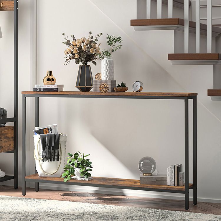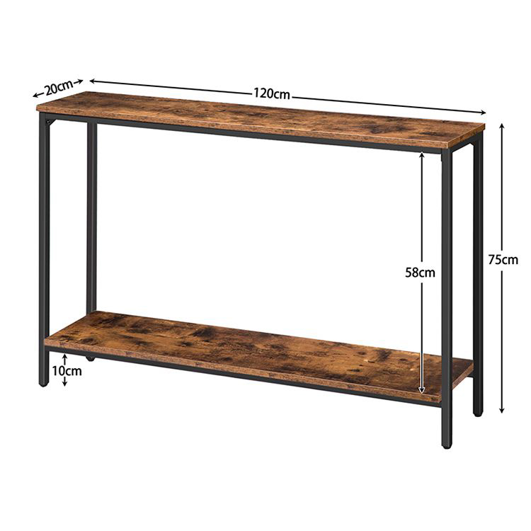 Consoletafel, 47.2 “Smalle ingangstafel, industriële banktafel met plank, toegangstafel voor woonkamer, gang, foyer, gang, kantoor, metalen frame, rustiek bruin en zwart