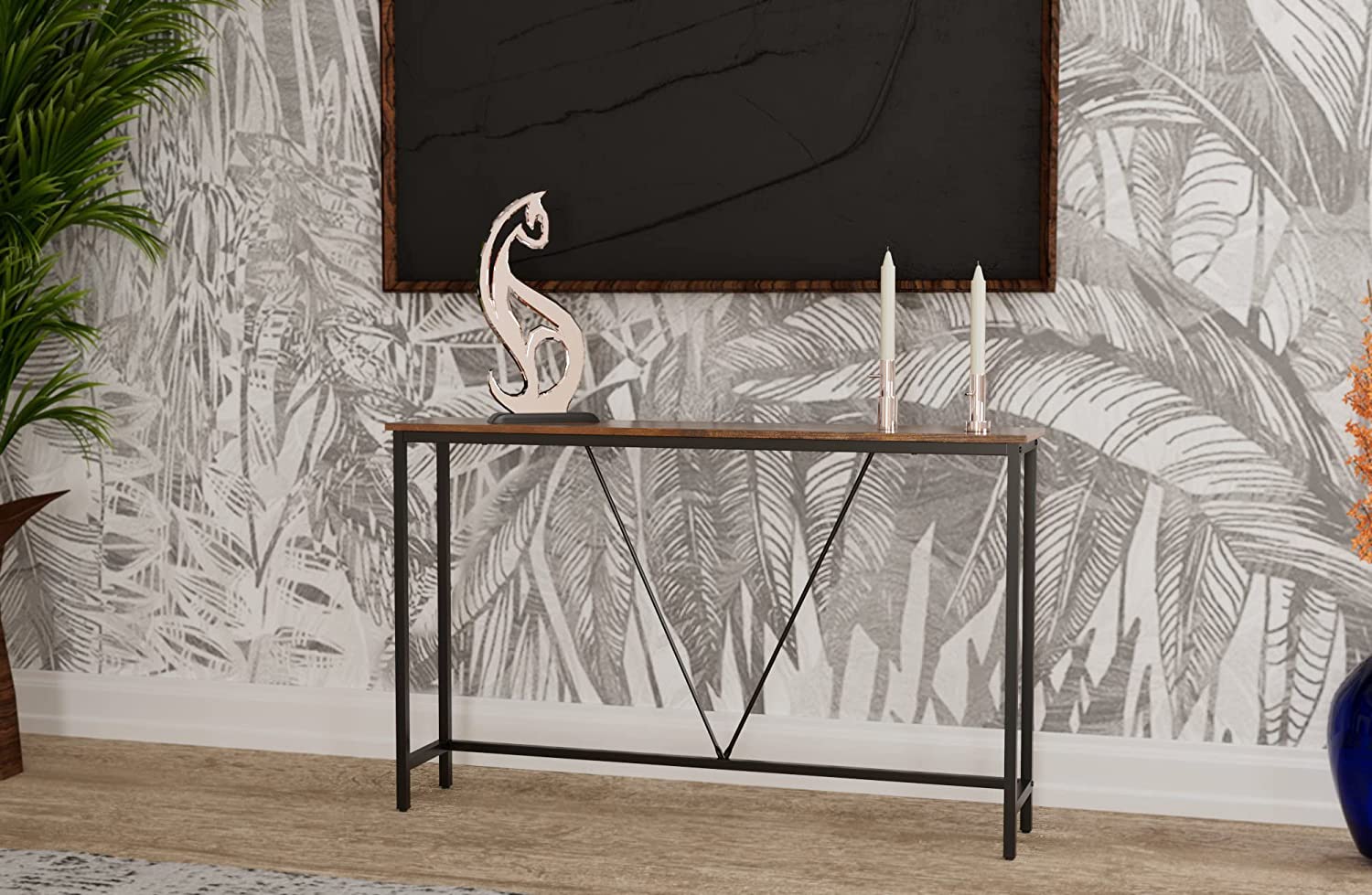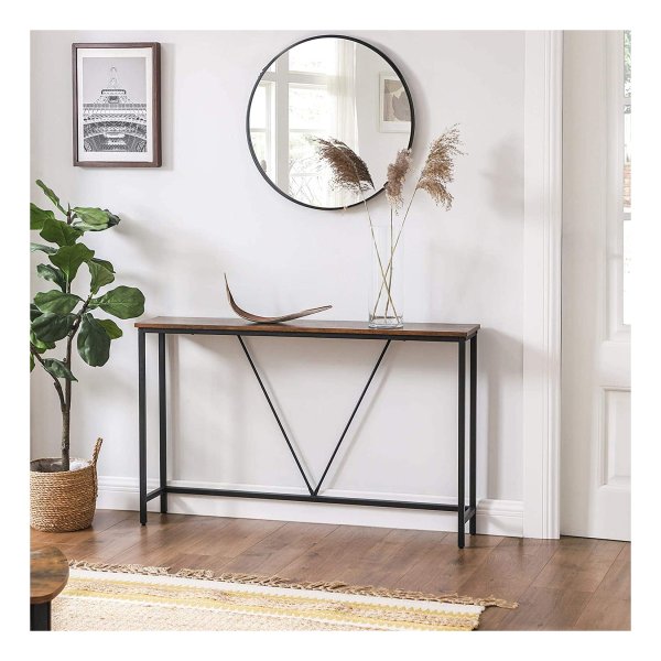 Consoletafel, Gangtafel, Bijzettafel, Entree, Woonkamer, Stabiel Stalen Frame, İndustrieel Design, Vintage Bruin-Zwart