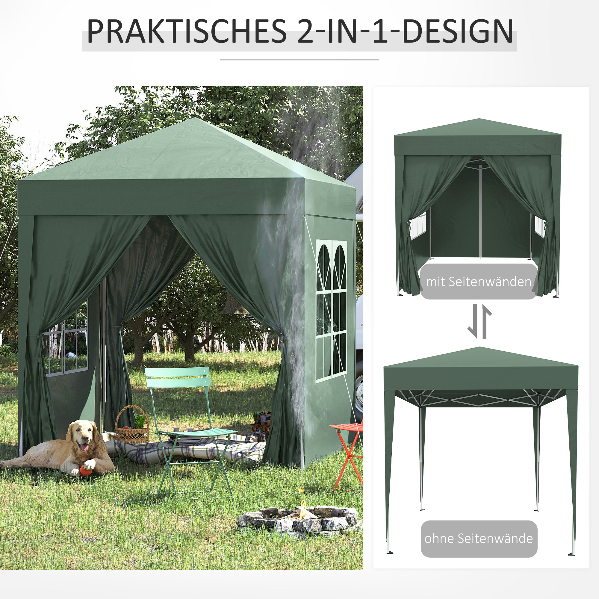 Draagtas zorgt voor eenvoudig transport van dit compacte 2x2m paviljoen, ideaal voor verschillende buitenactiviteiten. Sterke stalen frame, UV-bescherming en gemakkelijke montage maken het perfect voor feesten en evenementen..