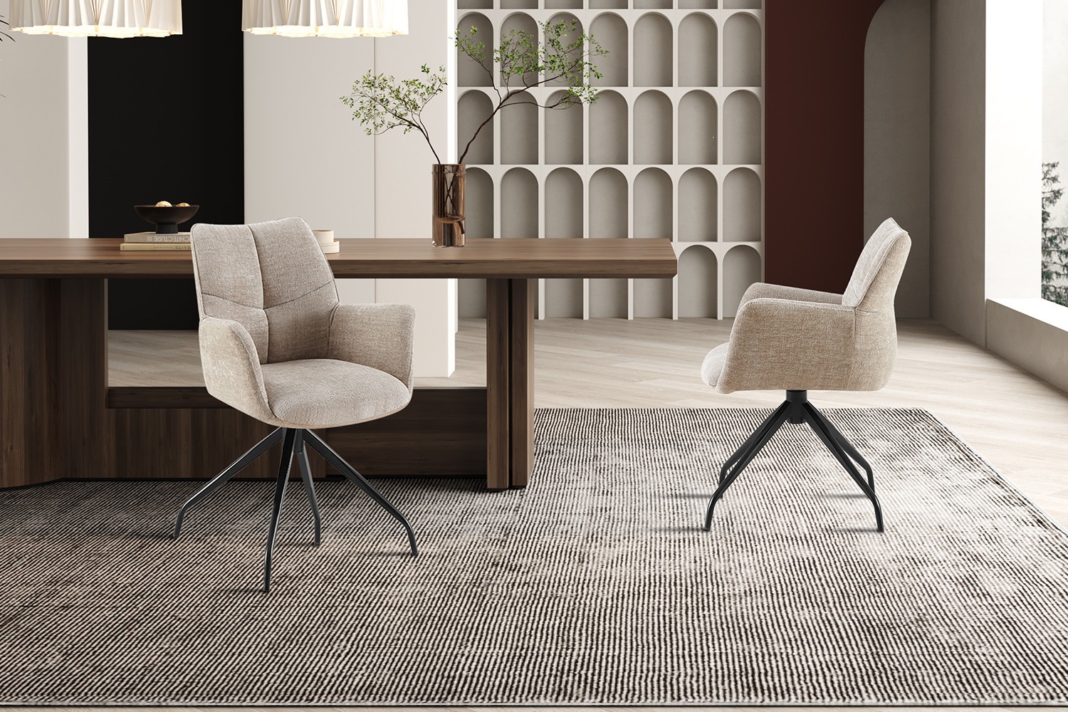 Deze comfortabele en stijlvolle stoel met draaimechanisme in zandkleurige stof wordt geleverd inclusief alle benodigde onderdelen voor eenvoudige montage.