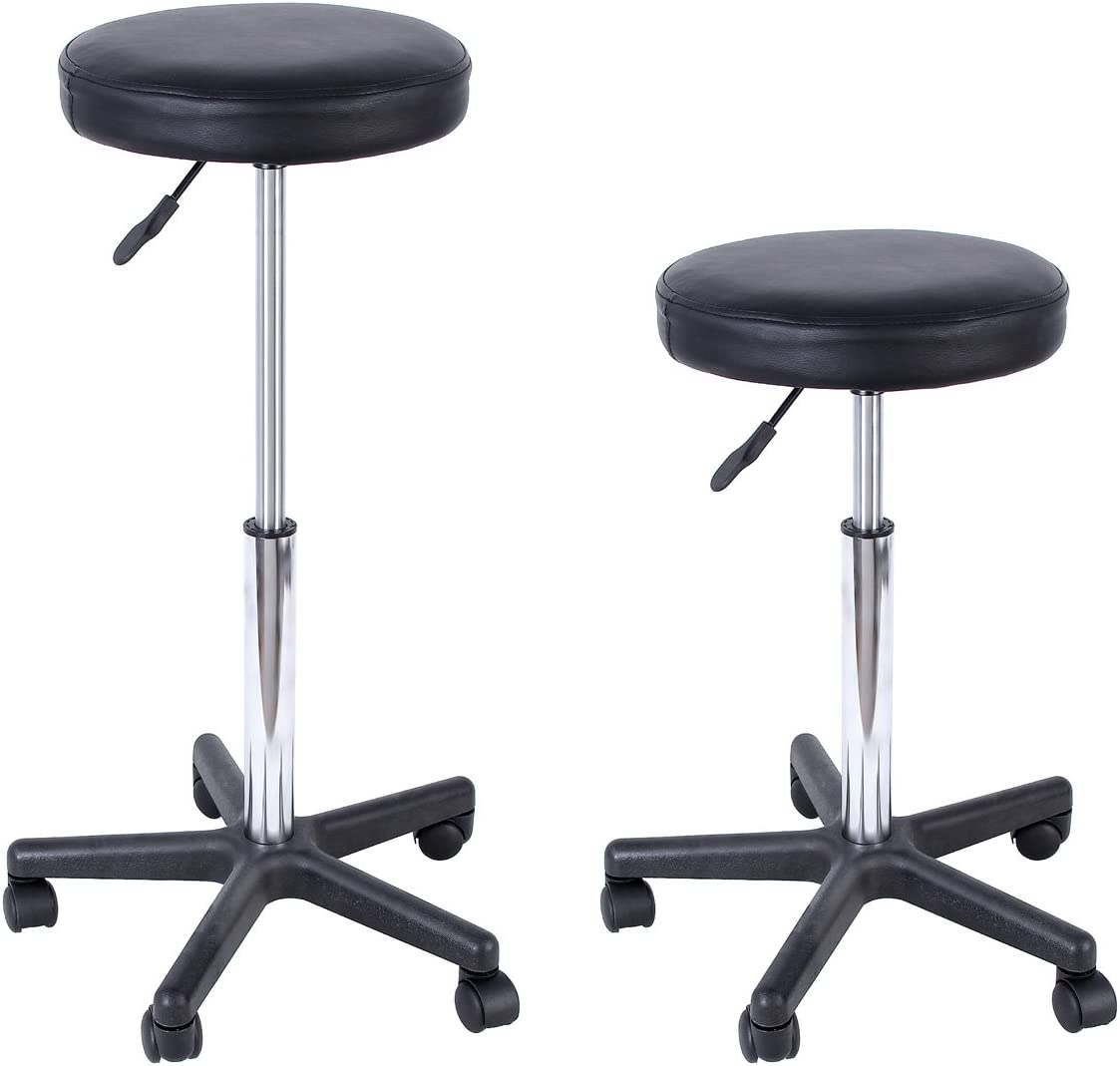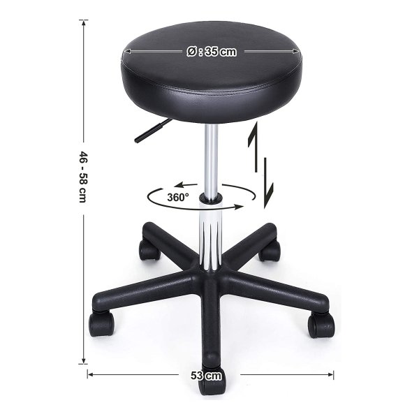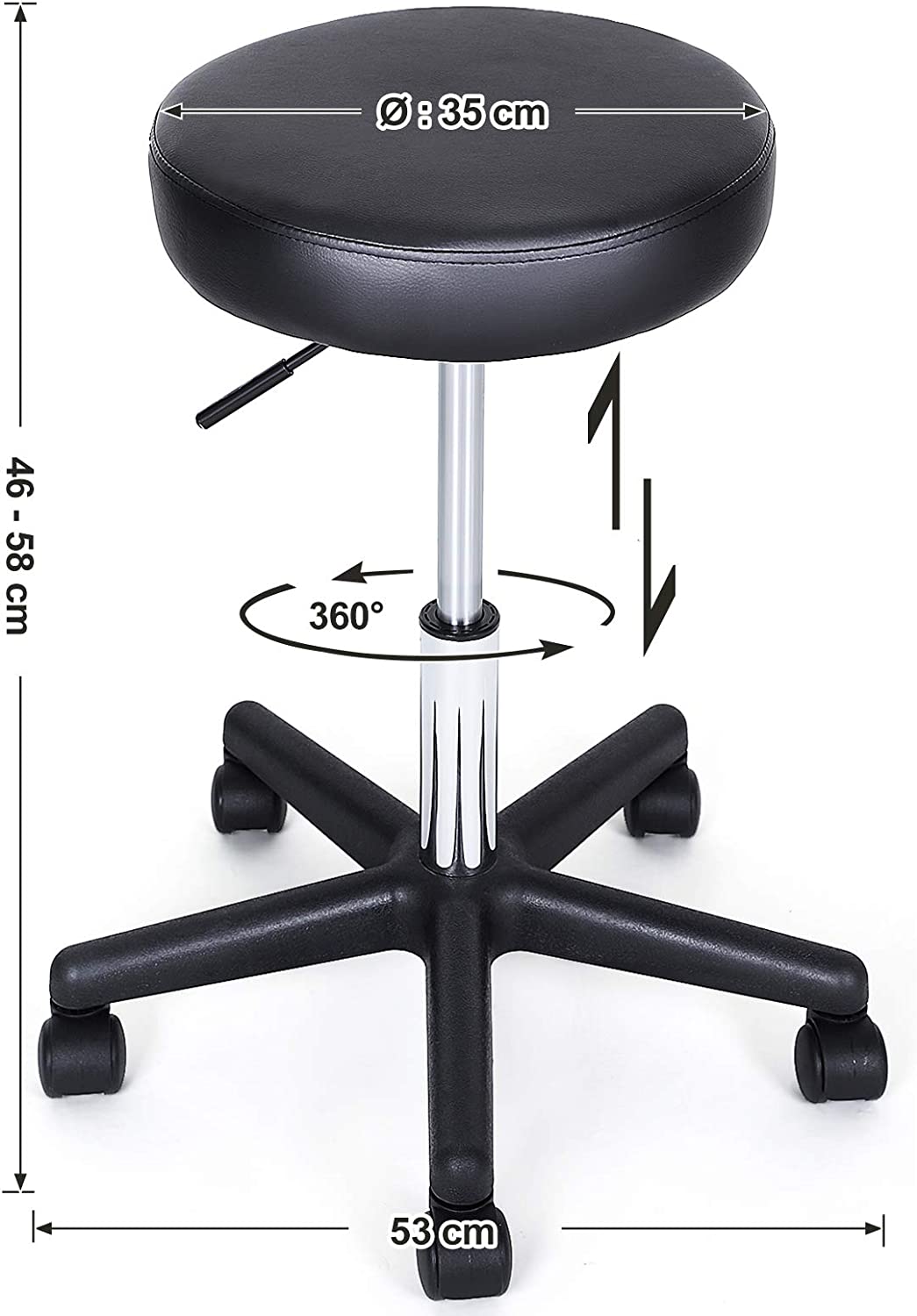 Draaikruk Op Wieltjes, İn Hoogte Verstelbare Rolkruk, 46-58 Cm, Met Kunstleer Beklede Zitting, Werkkruk Voor Cosmeticastudio’S, Kapsalons, Kantoren, Praktijken, Zwart