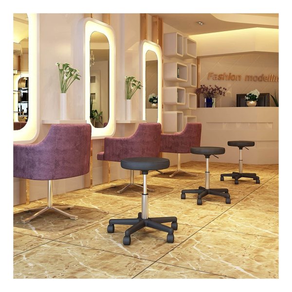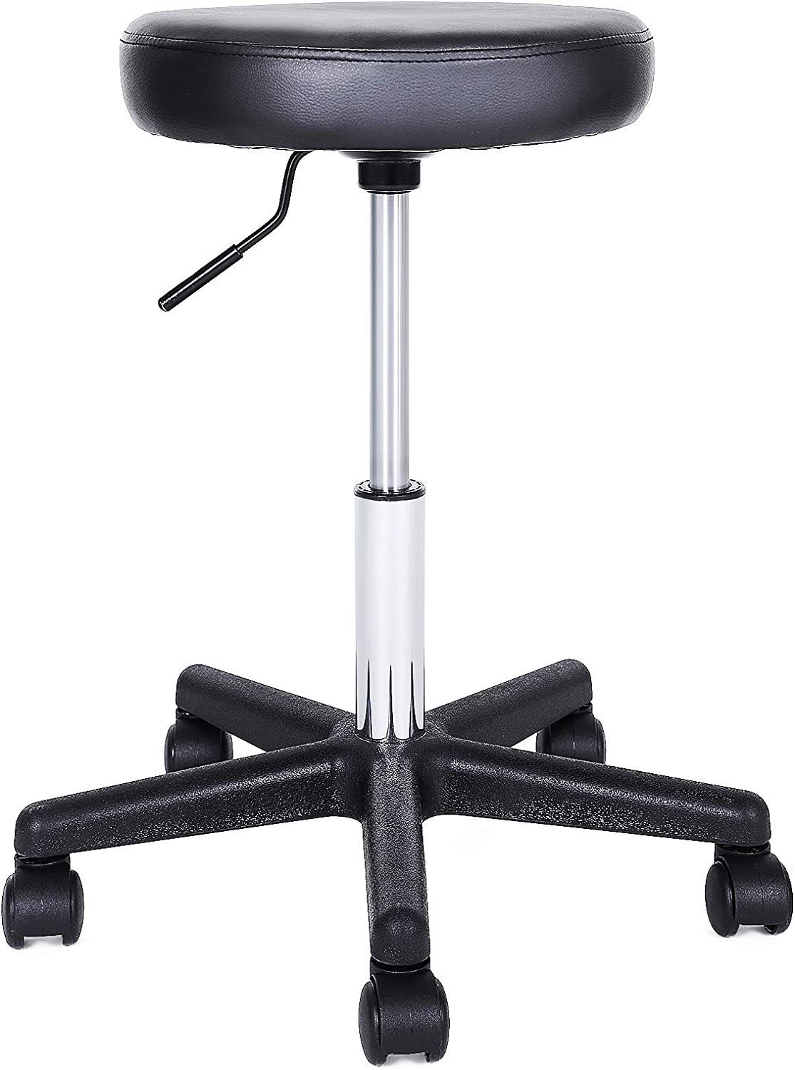 [Voor meer comfort in het dagelijks leven] Met schuim gevoerd en hoogwaardig kunstleer bekleed. Deze draaikruk zorgt voor een hoog zitcomfort en is gemakkelijk te reinigen. De hoogte is bovendien verstelbaar van 46 tot 58 cm, zodat deze rolkruk zowel je werk als je dagelijks leven gemakkelijker zal maken