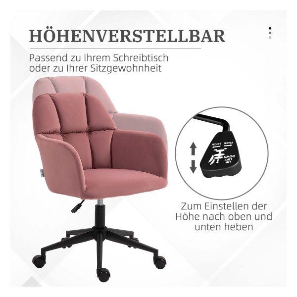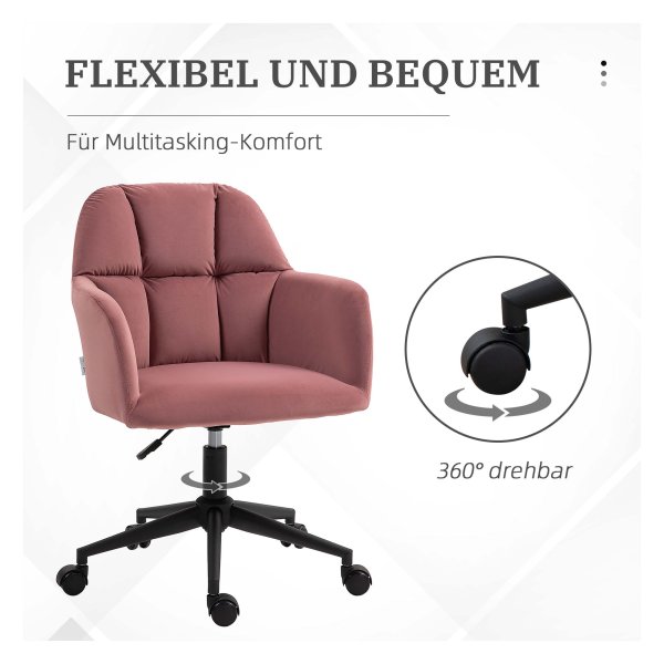 Bullet Point 5 | Vinsetto bureaustoel biedt een perfecte combinatie van ruimtebesparende kenmerken en ergonomisch comfort voor lange werkdagen, met zijn verstelbare hoogte, zachte fluwelen bekleding en optimale mobiliteit. Kies voor functioneel design en maximaal comfort met Vinsetto. |