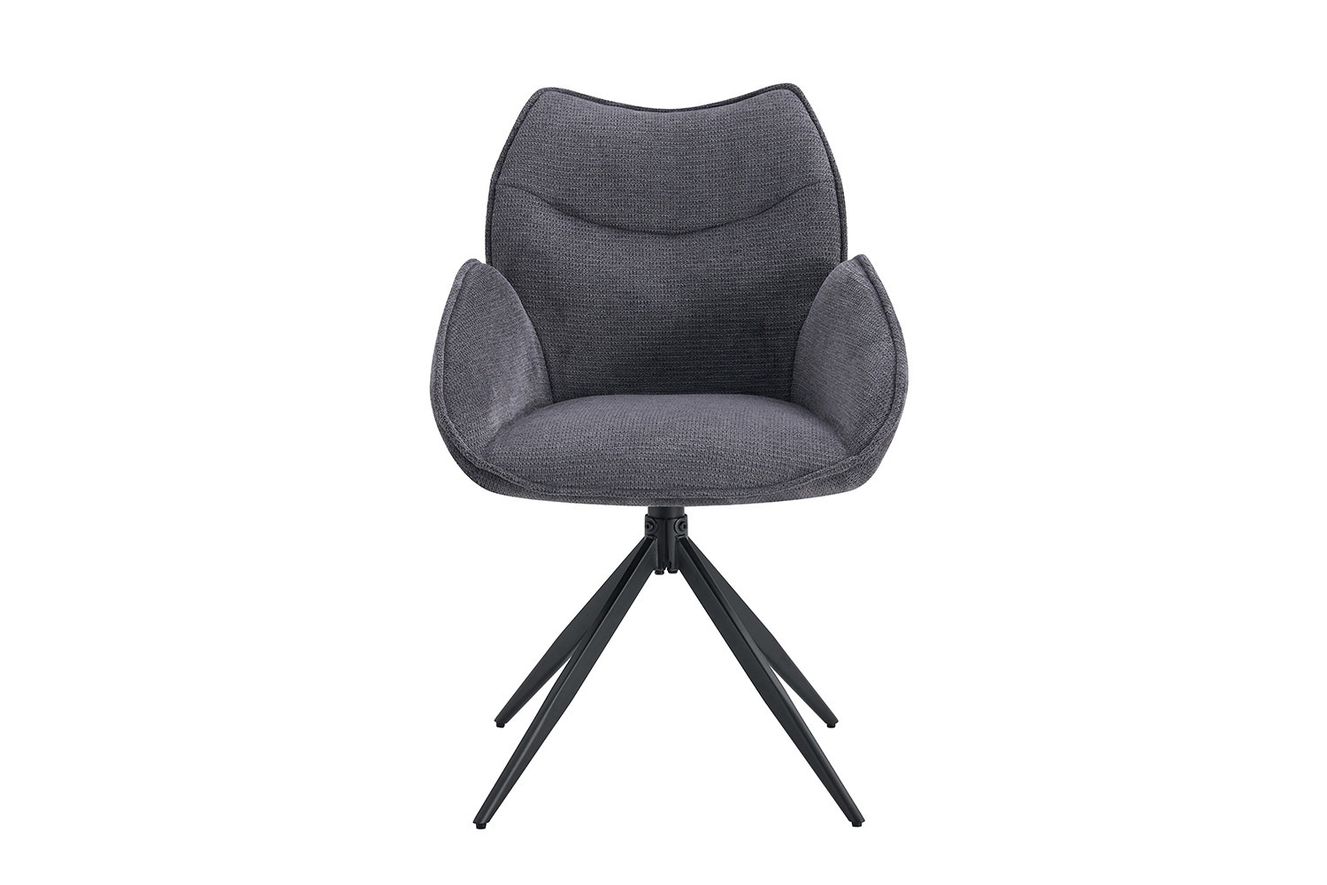 De donkergrijze stoffering van de stoel voelt zacht aan en zorgt ervoor dat je urenlang comfortabel kunt zitten. Daarnaast is de stoel gemaakt van hoogwaardige materialen die duurzaamheid garanderen, zodat je er lang plezier van zult hebben.