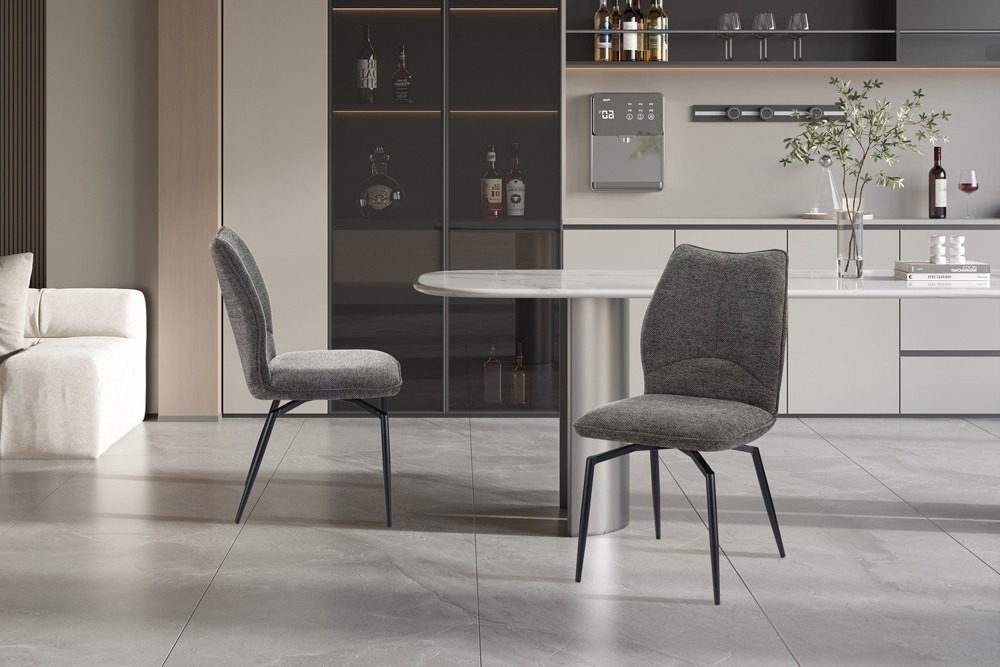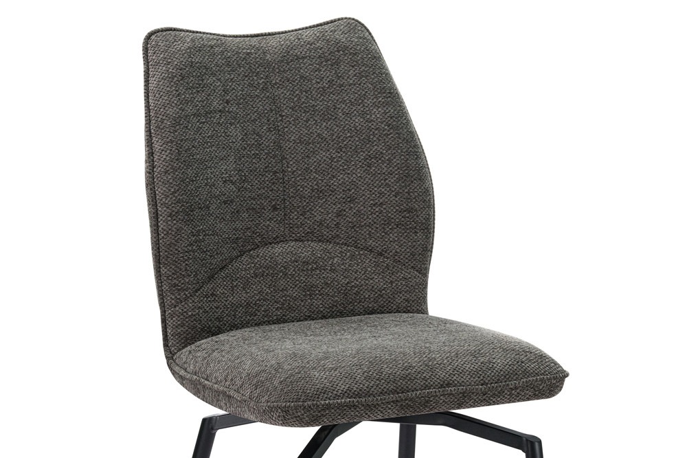 Draaistoel ‘Lara’ in grijs, draaibaar tot 360 graden met stoffen bekleding in Ote Sea 456. Afmetingen van 89 x 45. 5 x 60 cm.