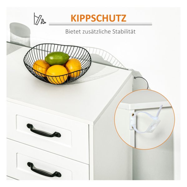 - Stevige constructie: Uitgerust met anti-kantelbescherming, zodat je het dressoir veilig aan de muur kunt bevestigen. Bij vervuiling is het gladde oppervlak van duurzaam hout gemakkelijk af te vegen.