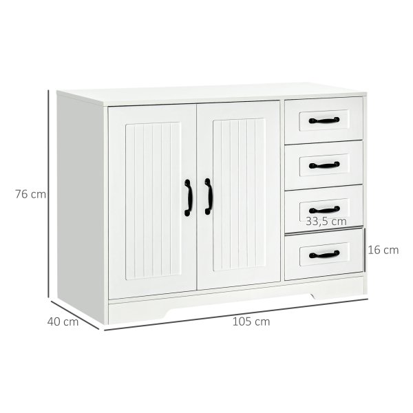 - Productgegevens van het dressoir: Afmetingen: 105B x 40D x 76H cm. Maximaal draagvermogen: 70 kg (totaal), 10 kg (plank), 5 kg (lade). Montage vereist.