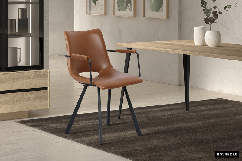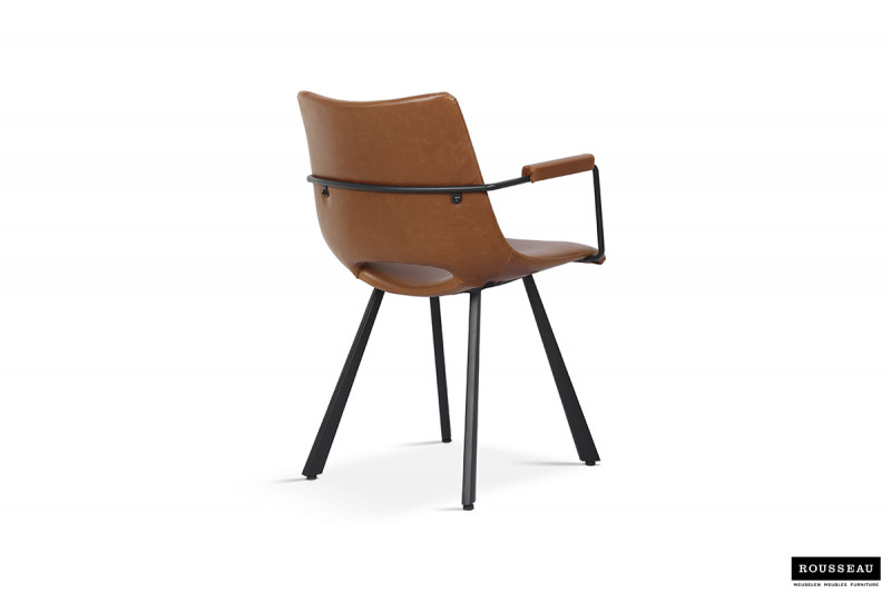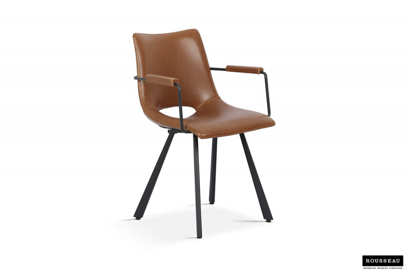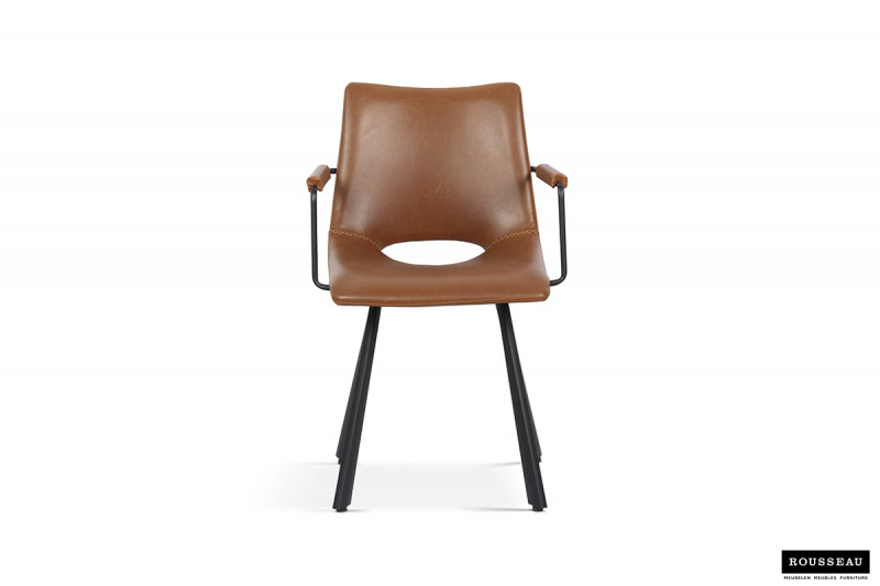 Eetkamerstoel ‘Assisi’ met armsteun PU Cognac, Poten metaal en bekleding PU vintage