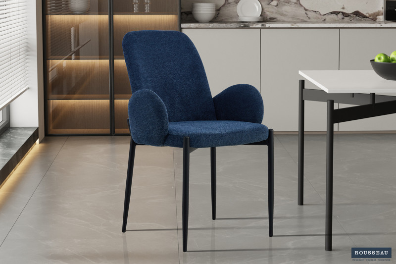 Eetkamerstoel ‘Bilbao’ Stof Blauw, Poten metaal en bekleding stof