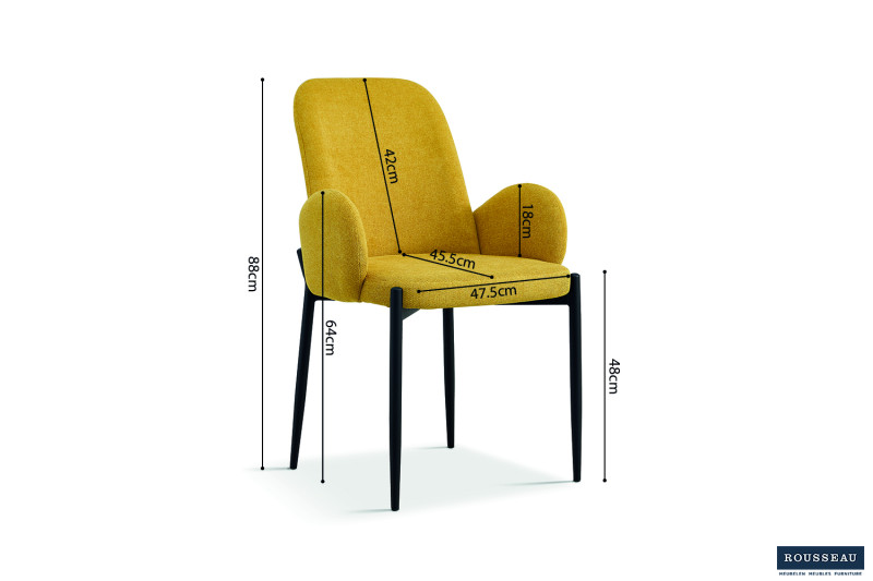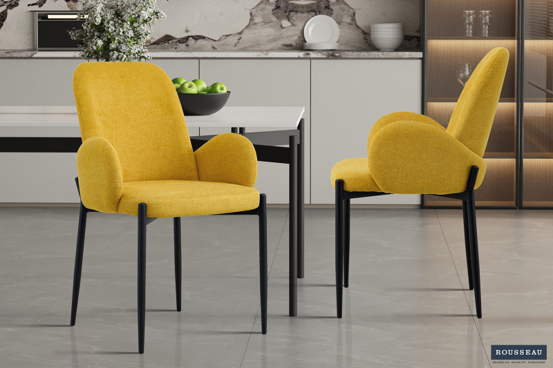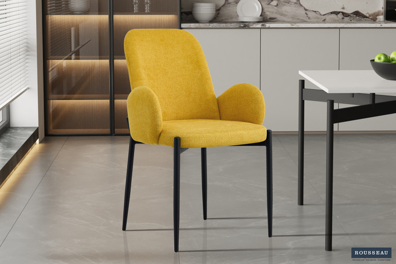 Eetkamerstoel ‘Bilbao’ Stof Geel, Poten metaal en bekleding stof