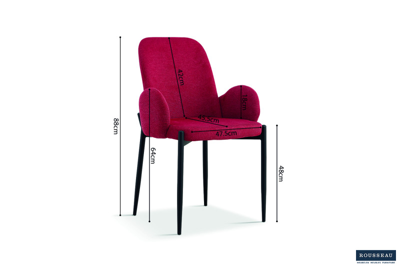 Eetkamerstoel ‘Bilbao’ Stof Rood, Poten metaal en bekleding stof