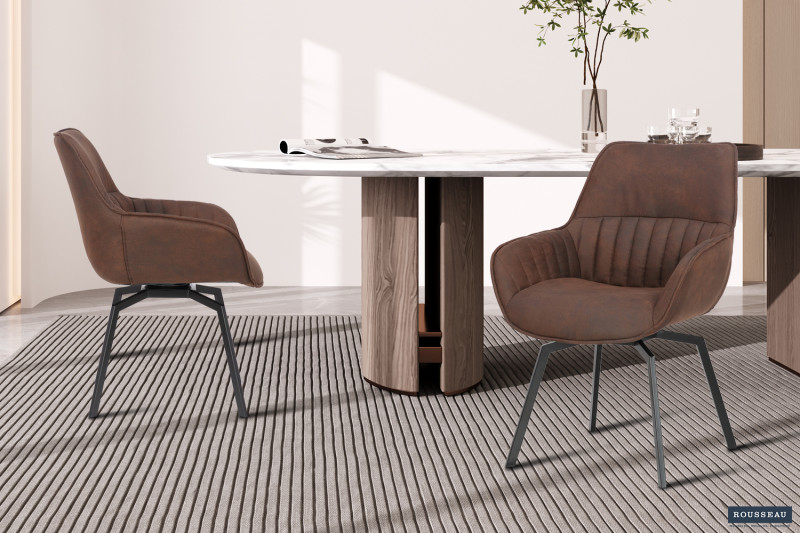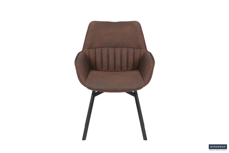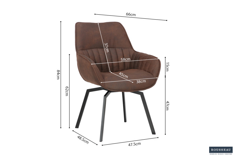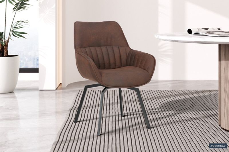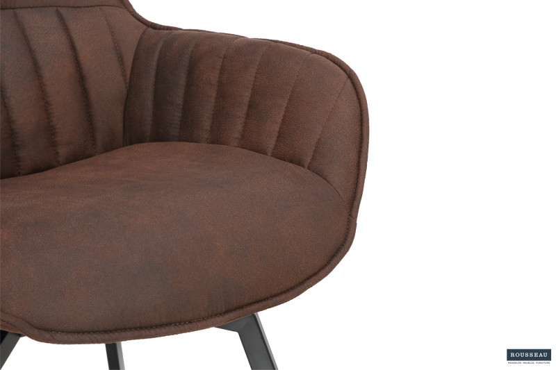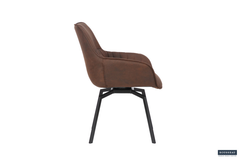 Eetkamerstoel ‘Bora’ Micro fiber PU Bruin, Poten metaal en bekleding Stof, draaibaar