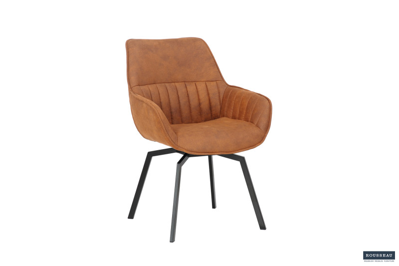 Eetkamerstoel ‘Bora’ Micro fiber PU Cognac, Poten metaal en bekleding Stof, draaibaar