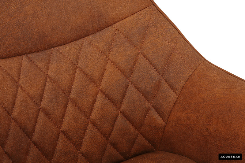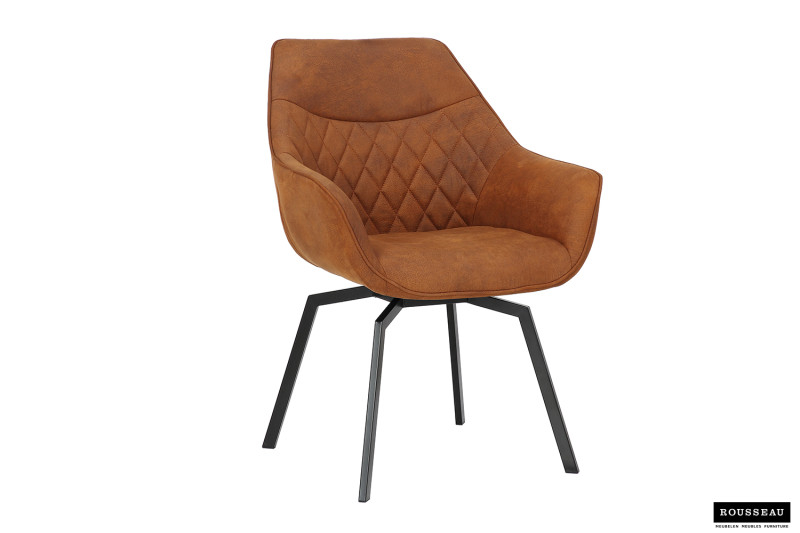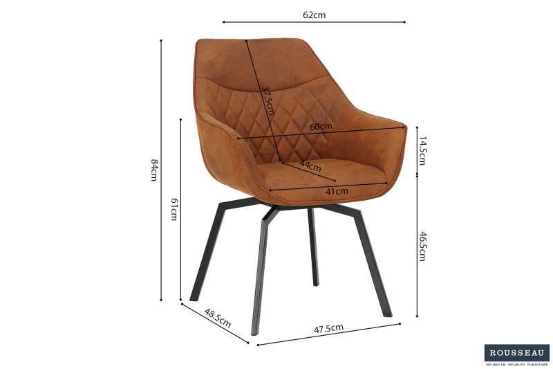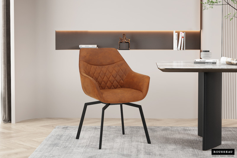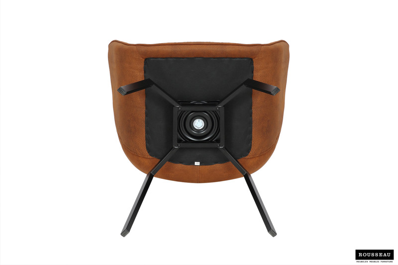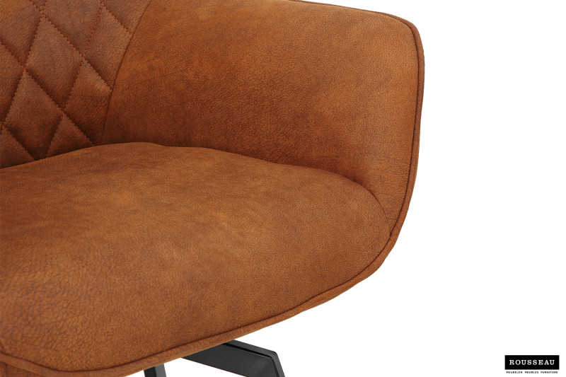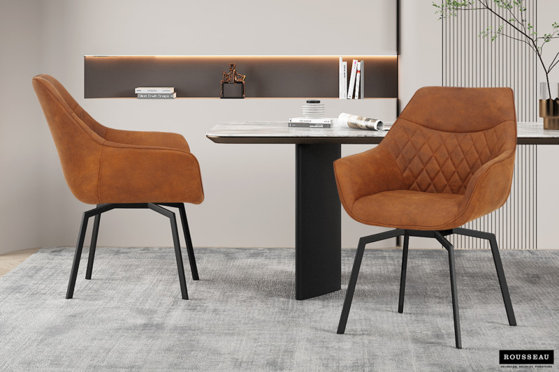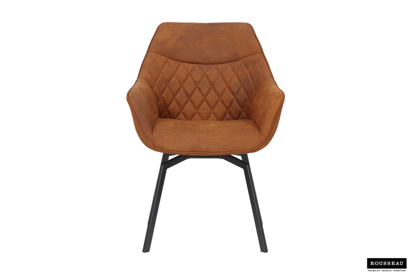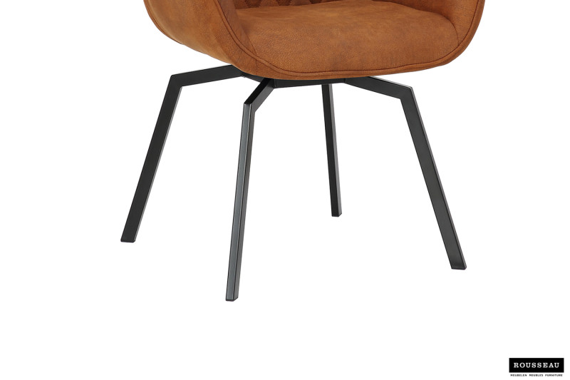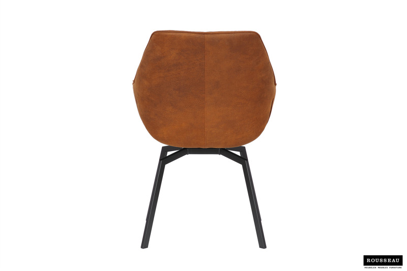 Eetkamerstoel ‘Doron’ Micro fiber PU Cognac, Poten metaal en bekleding Stof, draaibaar