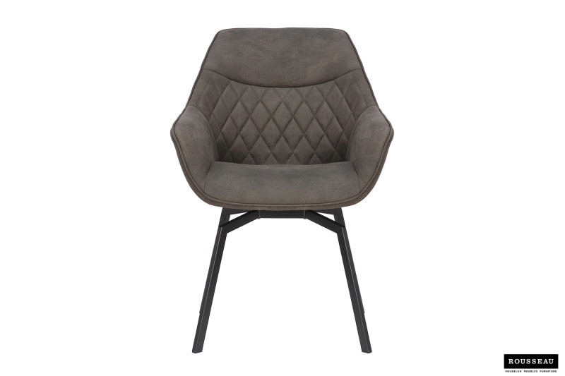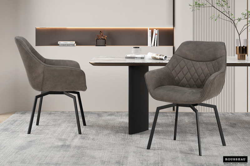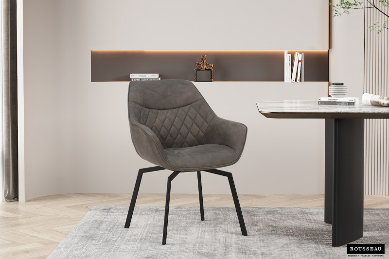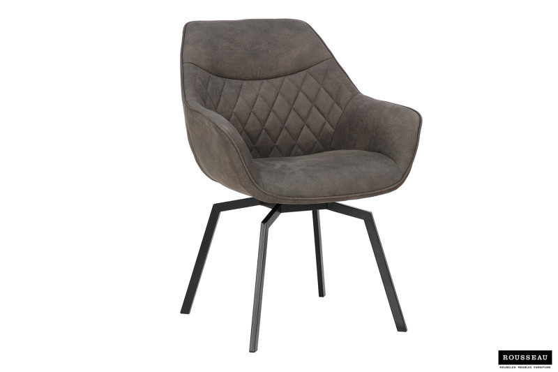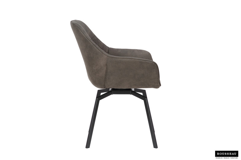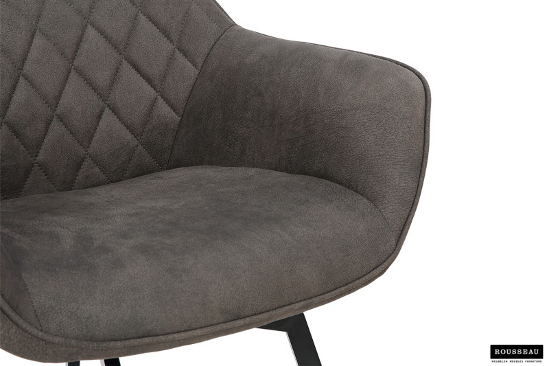 Eetkamerstoel ‘Doron’ Micro fiber PU Grijs, Poten metaal en bekleding Stof, draaibaar