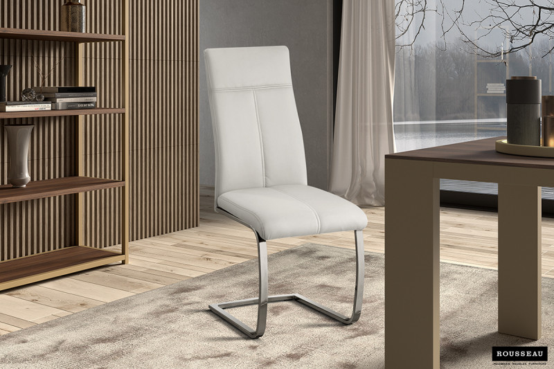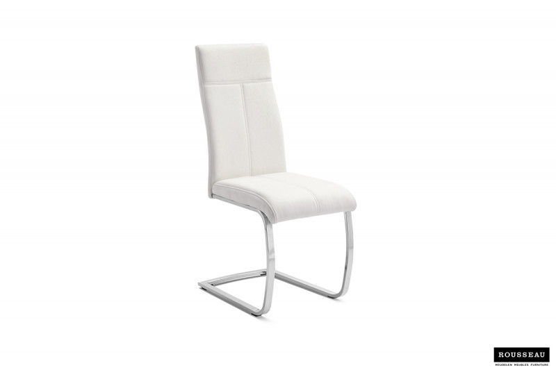 Eetkamerstoel ‘Elio’ PU Wit, Poten metaal verchroomd en bekleding PU