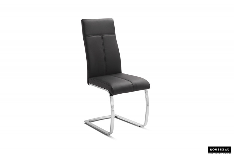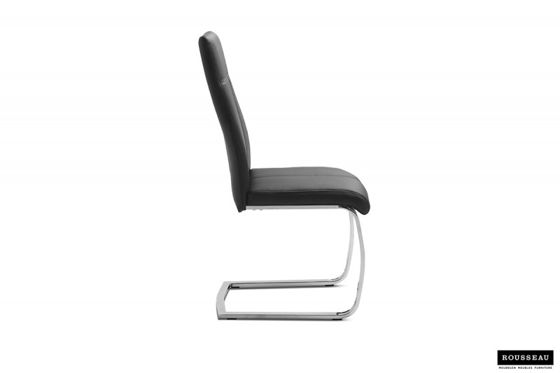 Eetkamerstoel ‘Elio’ PU Zwart, Poten metaal verchroomd en bekleding PU