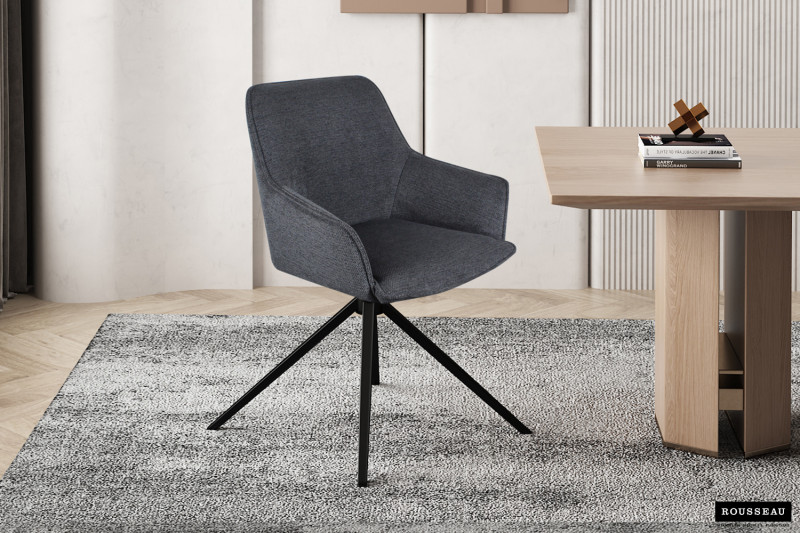 Eetkamerstoel ‘Iris’ Draaibaar Stof Donkergrijs is een elegante en functionele keuze voor moderne woonruimtes.