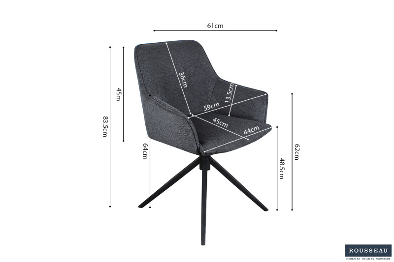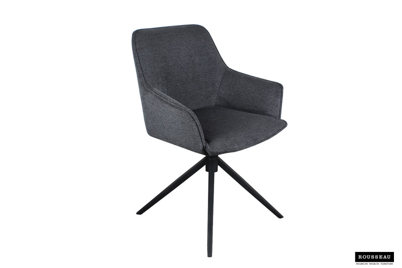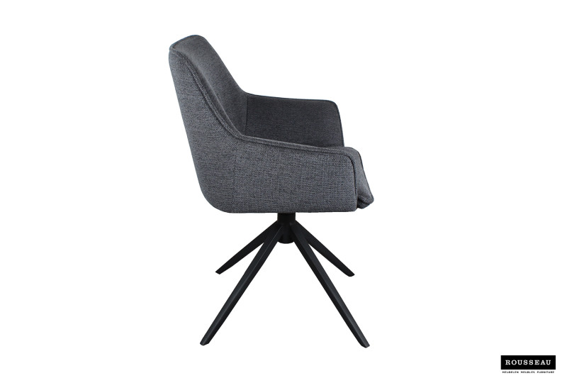 Eetkamerstoel ‘Iris’ Draaibaar Stof Donkergrijs, Poten metaal en bekleding Polyester, 180 cm