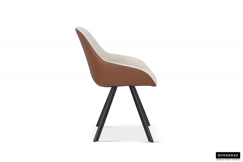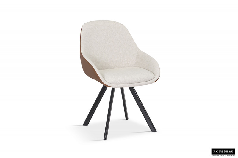 Eetkamerstoel ‘Jan’ Beige Rug Cognac, Poten metaal en bekleding 100% polyester + PU