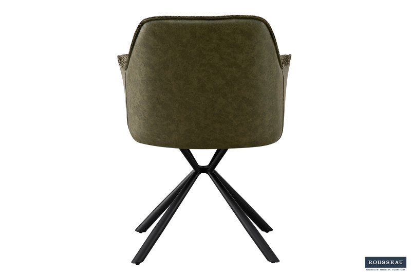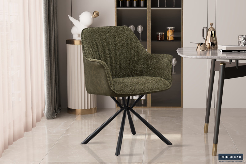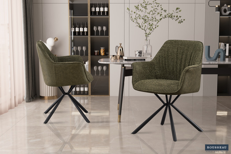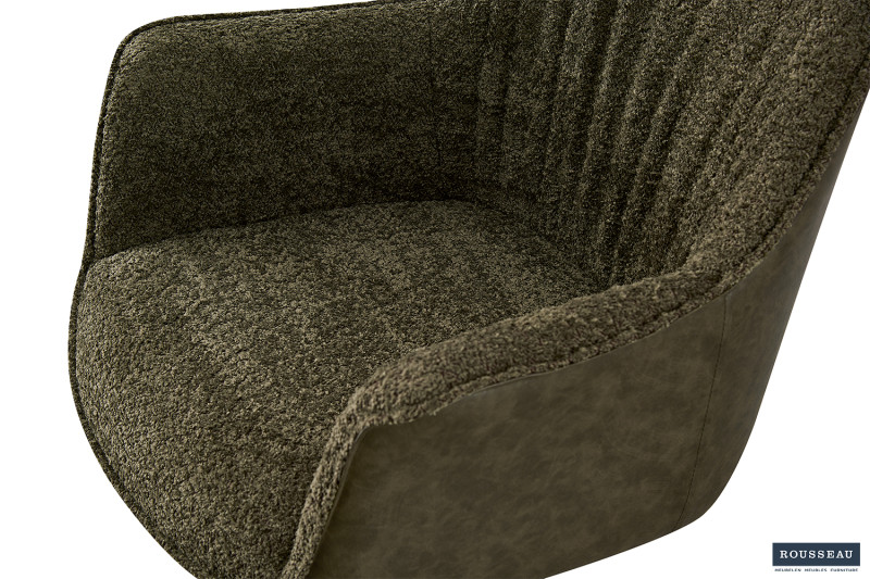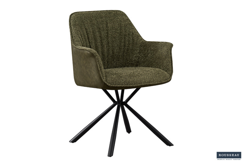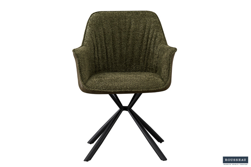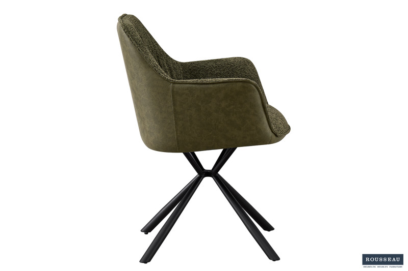 Eetkamerstoel ‘Lucie’ Boucl Groen Rug PU Donkergroen, Poten metaal en bekleding 100% polyester + PU