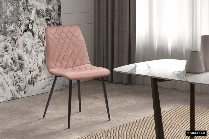 Eetkamerstoel ‘Maletto’ Fluweel Roze, Poten metaal en bekleding velours