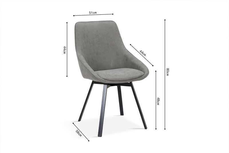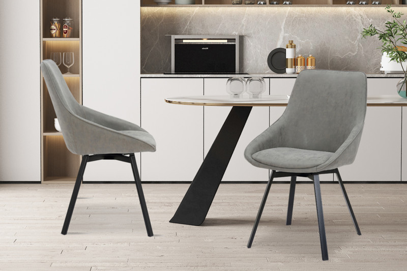 Eetkamerstoel ‘Mathias’ Draaibaar PU Lichtgrijs, Poten metaal en bekleding velours