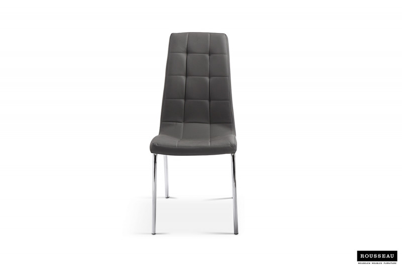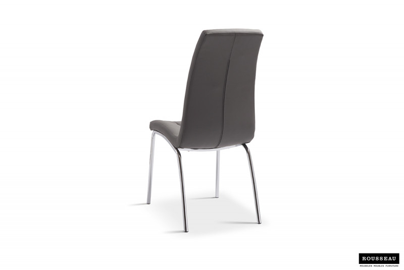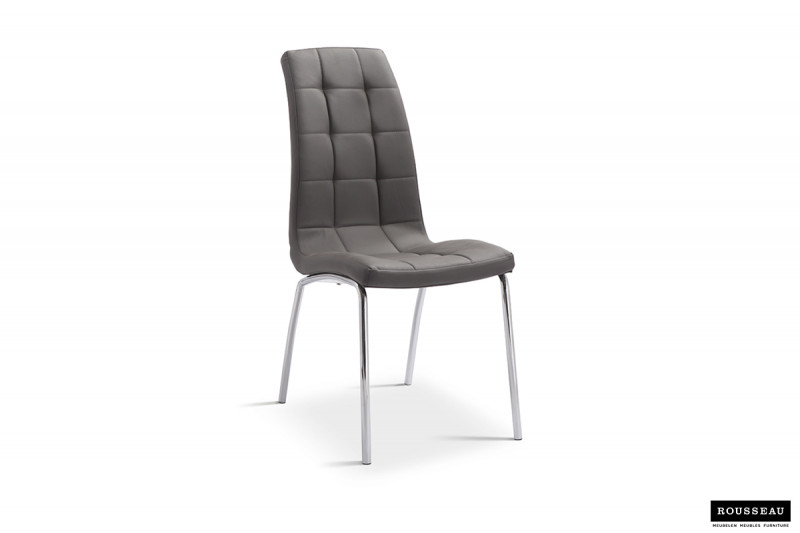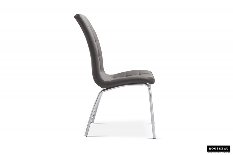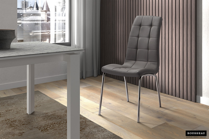 Eetkamerstoel ‘Merlino’ PU Grijs, Poten metaal verchroomd en bekleding PU