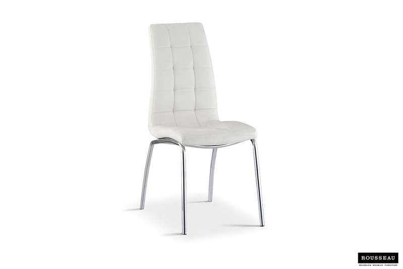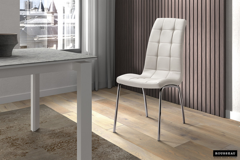 Eetkamerstoel ‘Merlino’ PU Wit, Poten metaal verchroomd en bekleding PU