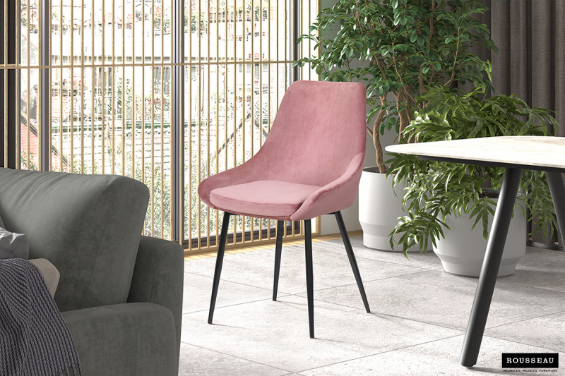 Eetkamerstoel ‘Mirano’ Fluweel Roze, Poten metaal en bekleding fluweel