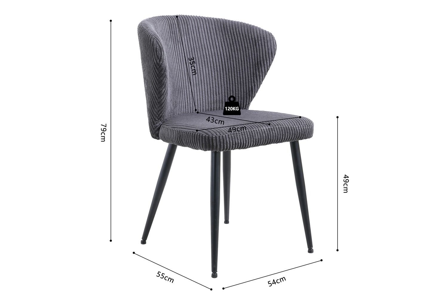 De eetkamerstoel ‘Tornado’ Corduroy Fabb Hyper 16 Grijs is 79 x 54 x 55 cm groot en heeft een comfortabele zithoogte van 7. 0′..