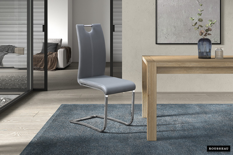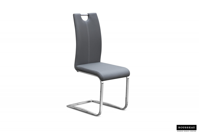Eetkamerstoel ‘Sofia’ PU Grijs, Poten metaal verchroomd en bekleding PU
