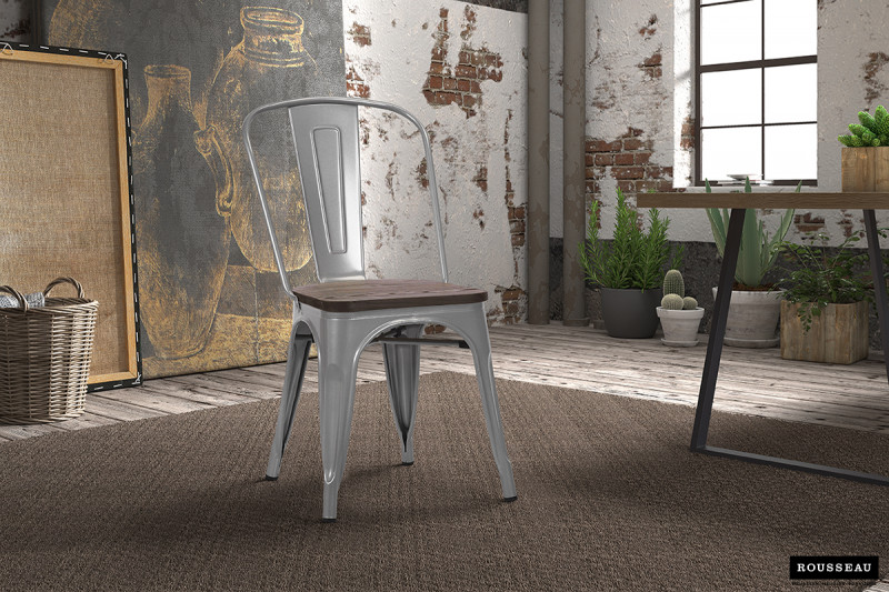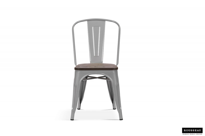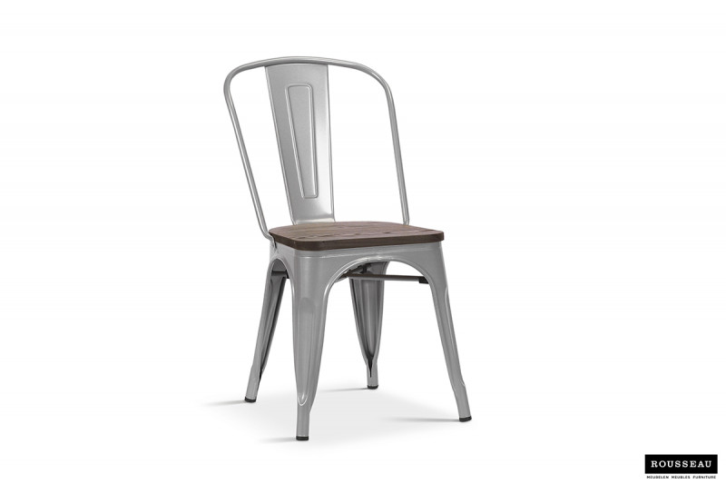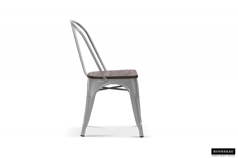Eetkamerstoel ‘Victoria’ Staal Lichtgrijs en iepenhout donker, Structuur metaal en zitting exotisch hout
