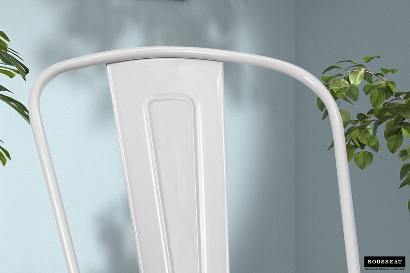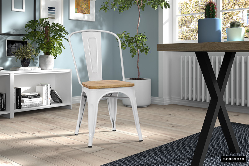 Eetkamerstoel ‘Victoria’ Staal Wit en iepenhout licht is een elegante en functionele keuze voor moderne woonruimtes.