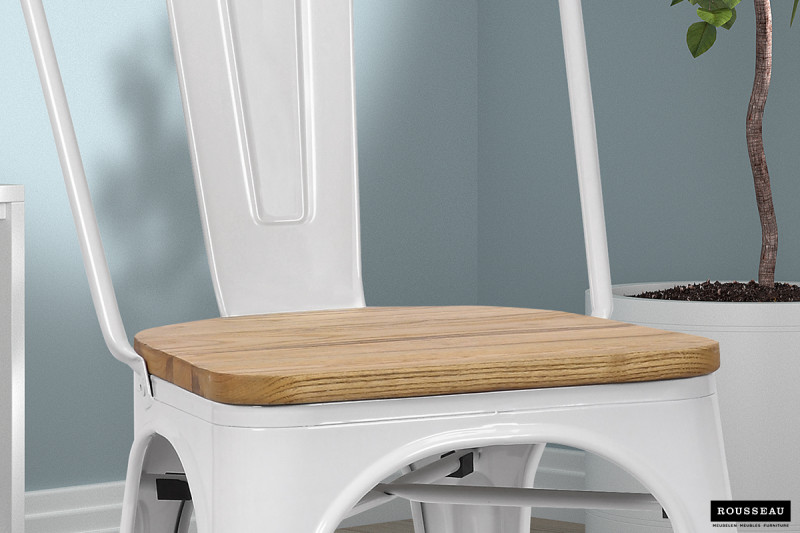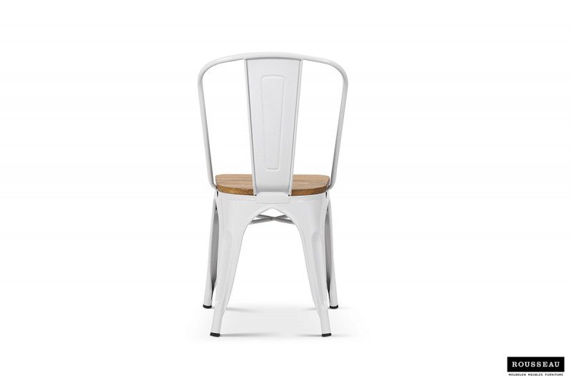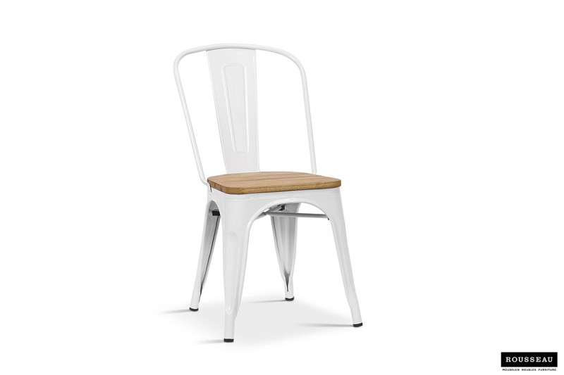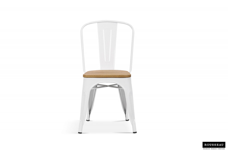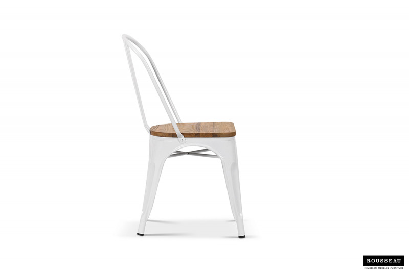 Eetkamerstoel ‘Victoria’ Staal Wit en iepenhout licht, Structuur metaal en zitting exotisch hout