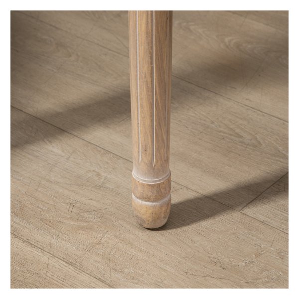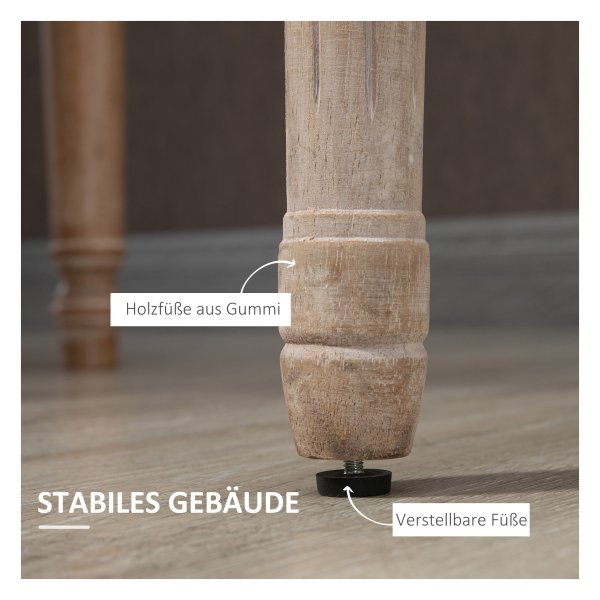 - Houten poten met een decoratieve afwerking zorgen voor stabiliteit en duurzaamheid