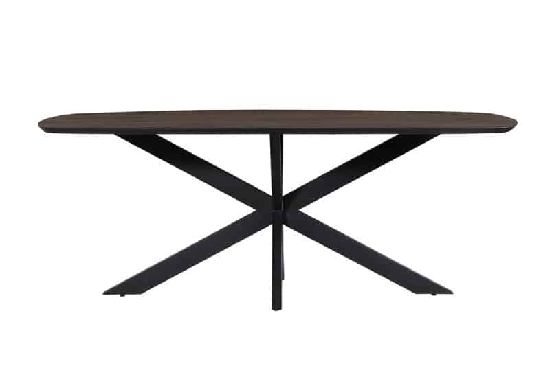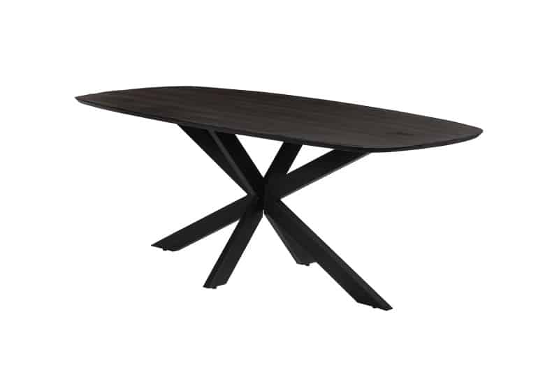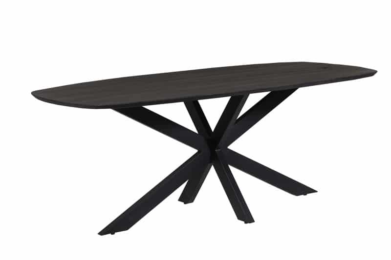 Eettafel ‘Isabella’ 200 cm Spider-poot Ovaal Mangolia Zwart, Structuur metaal, blad exotisch hout mangolia, – Top 45 mm