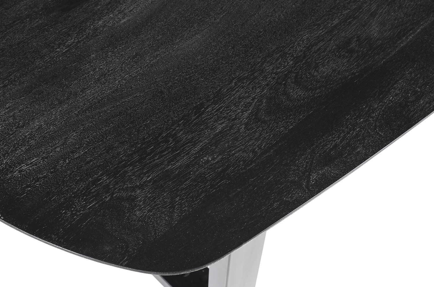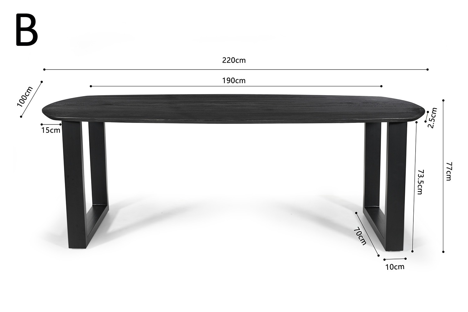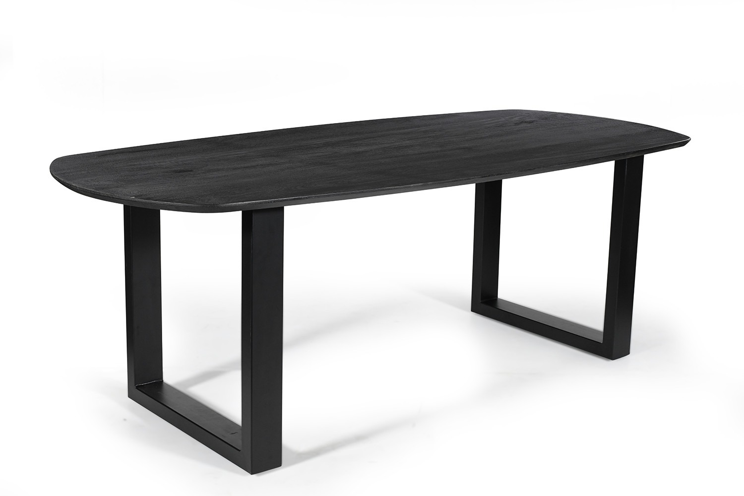Prachtige Deense eettafel ‘Tommy’ met ovale U-poot van zwart mango hout, afmetingen 220x100x77 cm. Top is 25 mm dik. Perfect voor gezellige diners!.