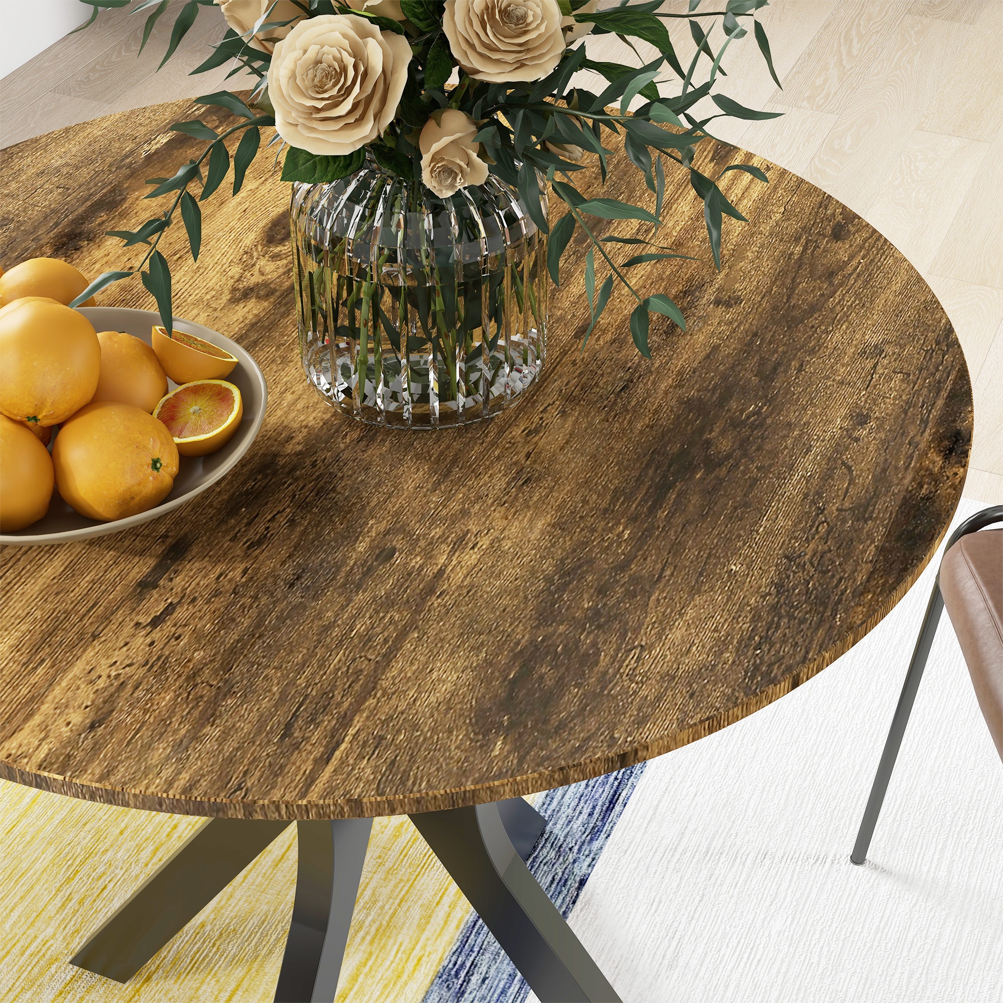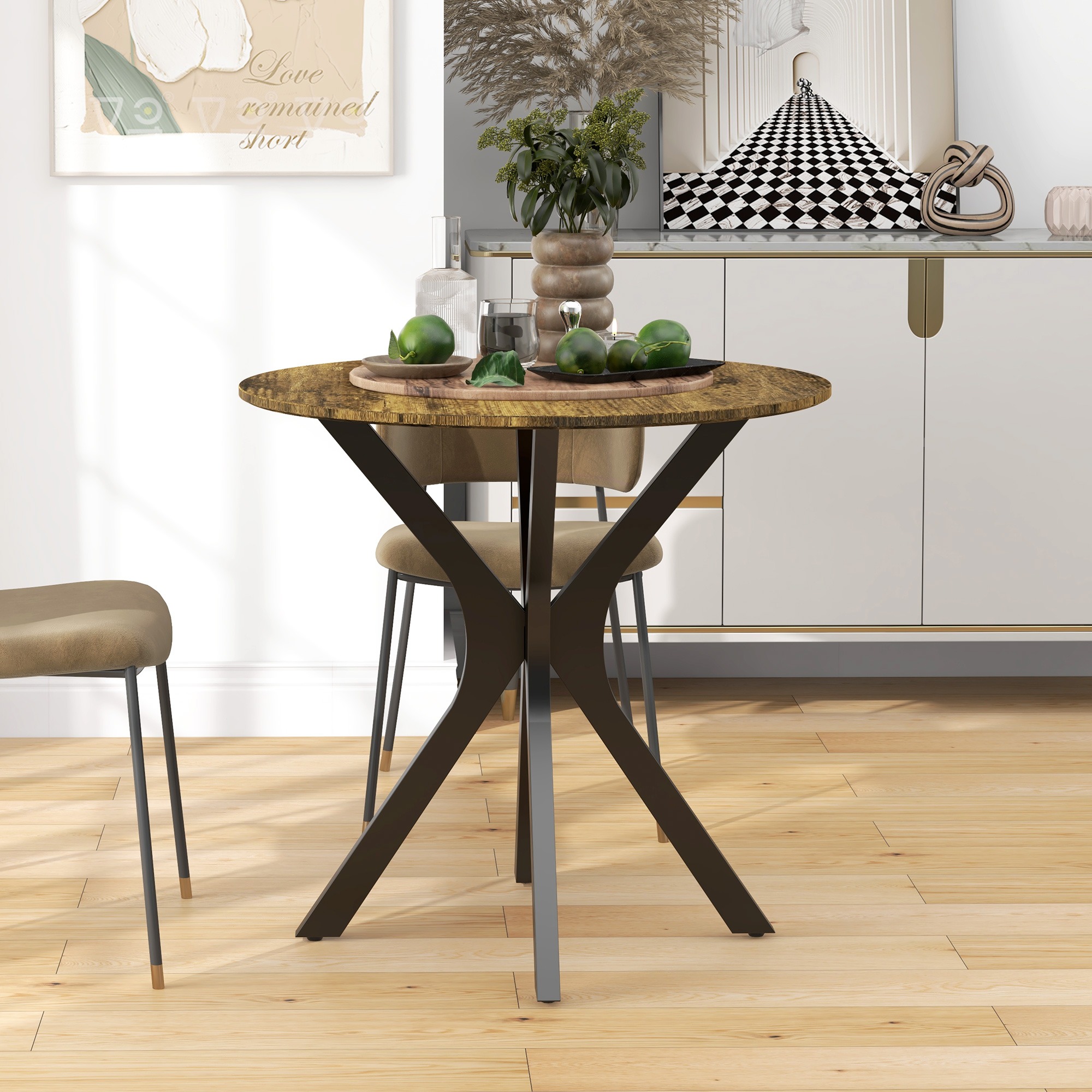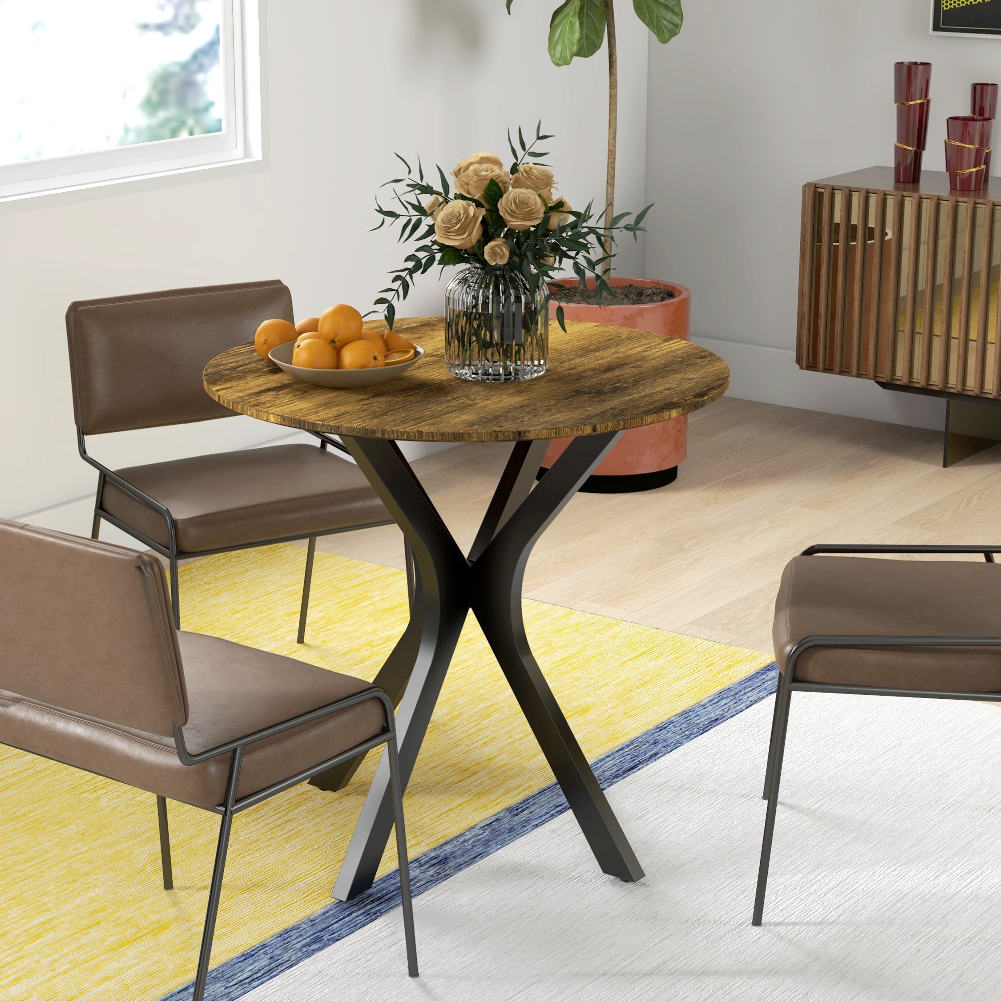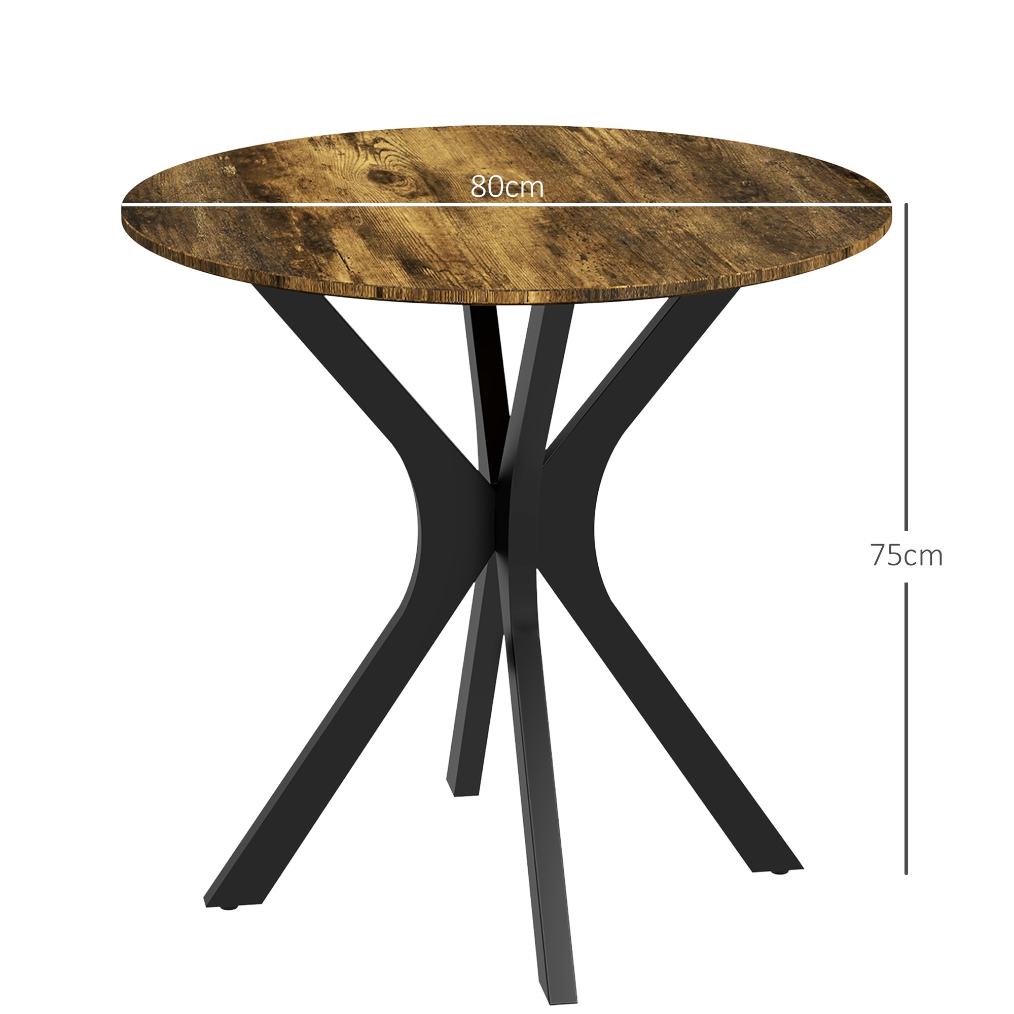 | Bullet Point 2 | Samenvatting: Moderne eettafel met slanke ronde vorm en gebogen poten van gepoedercoat staal. Geschikt voor twee personen, ideaal voor kleinere keukens. Gelakt MDF-tafelblad met verstelbare voetkussens voor stabiliteit en bescherming van de vloer. Montage vereist. Rustiek bruin van kleur, 78 x 75H cm, draagkracht 15 kg. Inclusief handleiding. |