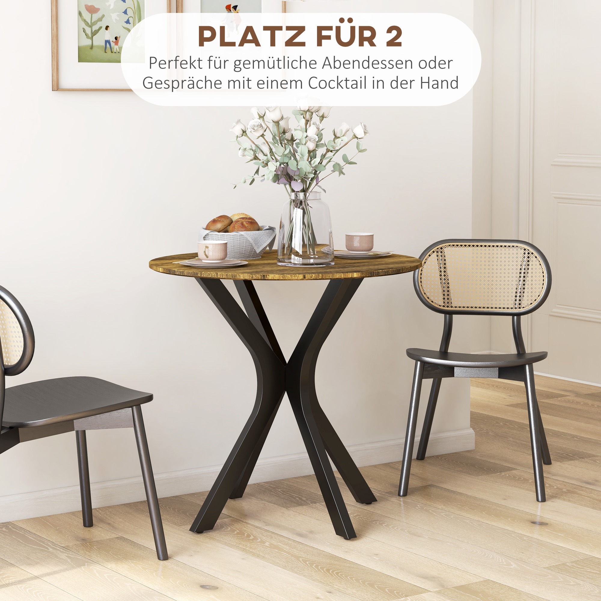 | Bullet Point 4 | Het monteren van deze eettafel van HOMCOM is eenvoudig en vereist wat montagewerk. Dankzij de vier gebogen poten van gepoedercoat staal staat de tafel stabiel en stevig op zijn plaats. De verstelbare voetkussens zorgen niet alleen voor stabiliteit, maar beschermen ook de vloer tegen krassen. Dit biedt veel flexibiliteit omdat de tafel op verschillende vloeroppervlakken kan worden geplaatst. Het moderne ontwerp past goed bij verschillende interieurstijlen en is ideaal voor twee personen. Met een ruim rond tafelblad is er genoeg ruimte voor eten en drinken. Geniet van gezellige diners en een ontspannen sfeer, waar je ook bent. |