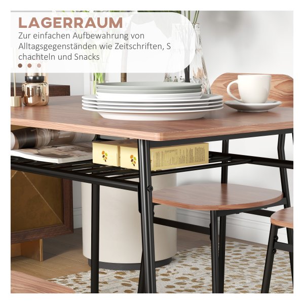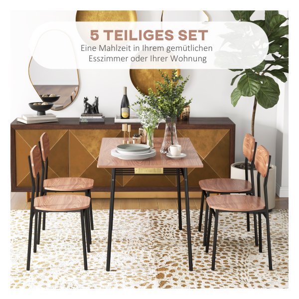 Ein elegantes eettafelset van HOMCOM met een ruime tafel en 4 stoelen voor 4 personen. Perfect voor gezellige maaltijden en samenzijn. Met handige opbergruimte en een compact design voor kleine ruimtes.