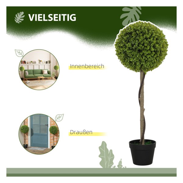 Dieses Set mit zwei künstlichen Eukalyptusbäumen verleiht Ihrem Raum Eleganz. UV-beständig und langlebig, perfekt für Innen- und Außenbereiche. Keine aufwendige Pflege nötig, einfach aufstellen und das ganze Jahr über grün genießen.