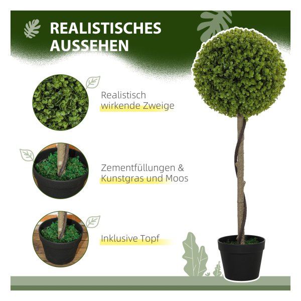 - Materiaal: kunststof, kunstmos; pot met cementvulling