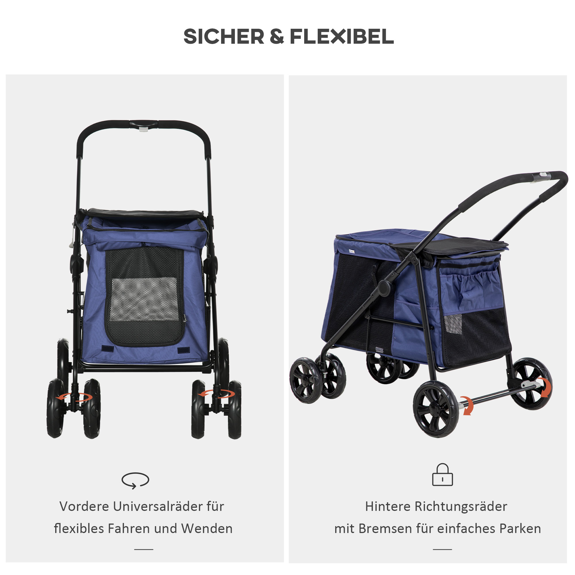 | Bullet Point 5 | Opvouwbare hondenbuggy: deze hondenbuggy kan met slechts één hand worden opgevouwen, waardoor hij draagbaar is. Het is een betrouwbare metgezel tijdens het reizen, winkelen, een bezoek aan de dierenarts of wanneer u uw puppy meeneemt voor een dagelijkse wandeling.Vier wielen: De hondentrolley heeft remmen op twee achterwielen voor meer veiligheid, twee 360° universele wielen aan de voorkant en een handvat voor soepele beweging en gemakkelijk duwen. Hoogwaardig materiaal: massief stalen frame met stevige structuur en hoogwaardige 600D Oxford-stof, de hondenbuggy is stabiel en duurzaam, bestand tegen betrouwbaar dagelijks gebruik. Productgegevens: Totale afmetingen: 102 L x 62 W x 105Hcm. Interne afmetingen: 75L x 40B x 44H cm. Geschikt voor kleine en middelgrote honden die minder dan 50 cm lang zijn en minder dan 20 kg wegen. Gewichtscapaciteit: 20 kg Montage vereist. |
