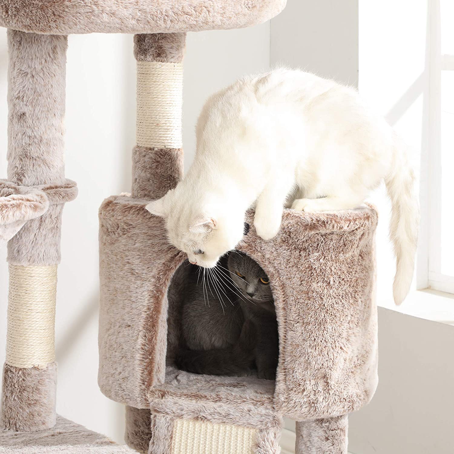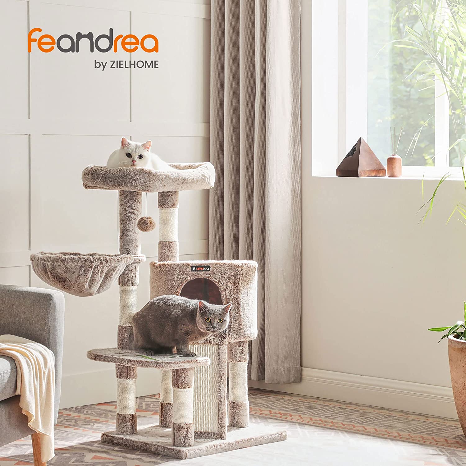 HOERA! Dankzij deze krabpaal voelt je harige bal zich niet meer eenzaam als je niet thuis bent. Zet deze stevige klimboom naast je kat en laat ze spinnen!