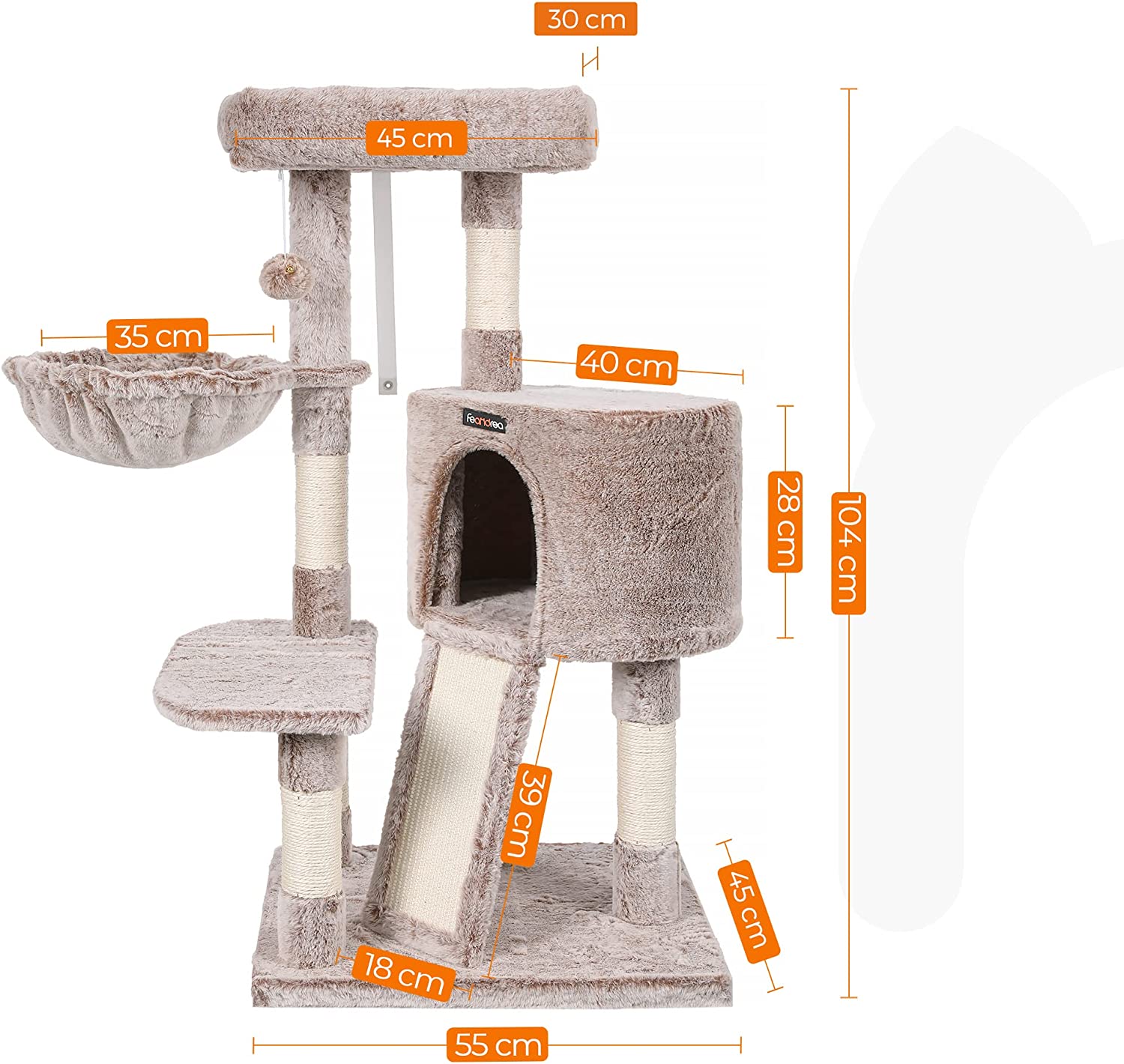 NAAR DE TOP! Je kat zal het heerlijk vinden om op het grote en zachte platform bovenaan te zitten. Daarnaast is de pluche hoes afneembaar en makkelijk schoon te maken, zodat de leefruimte van je kat altijd schoon is