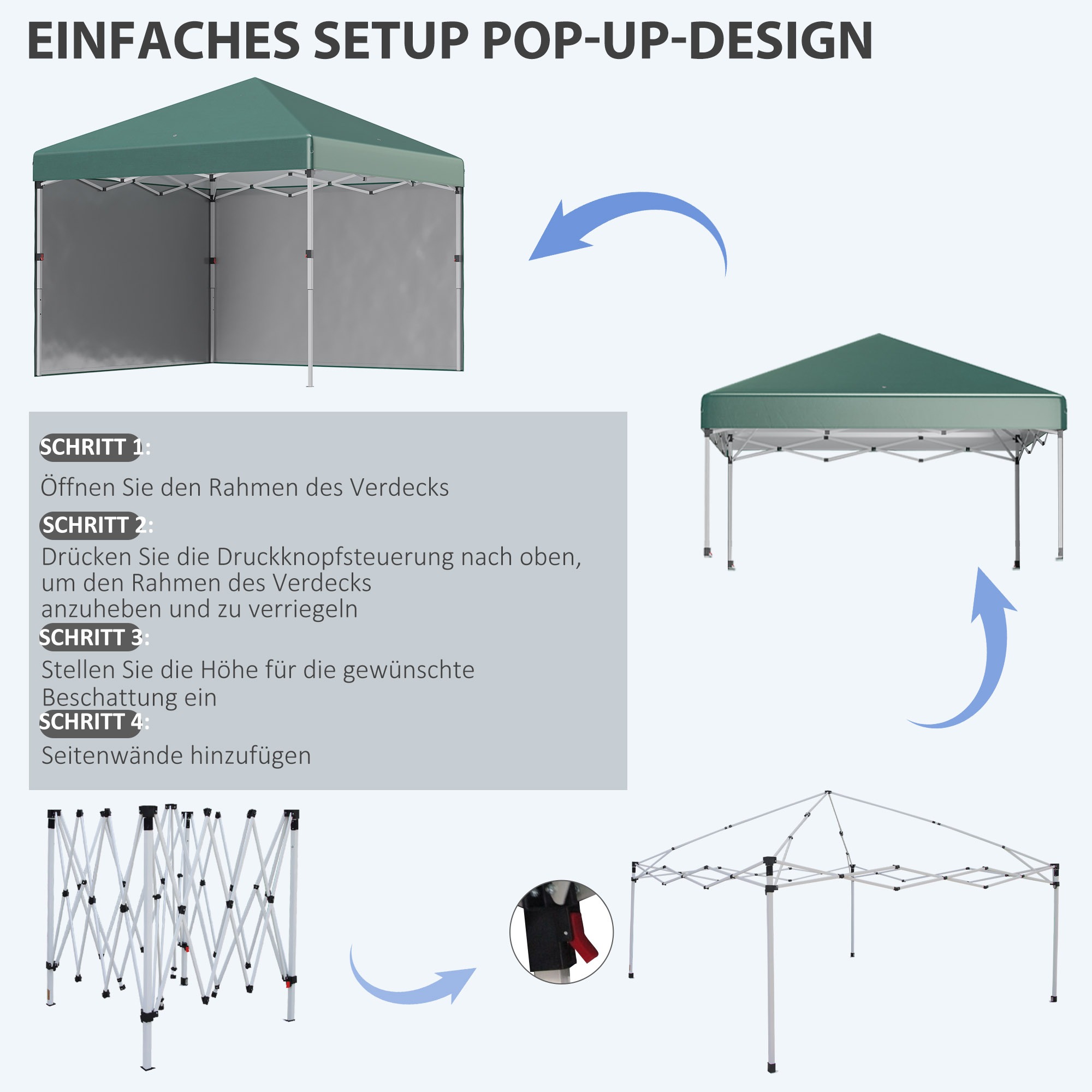 Faltbarer Pavillon mit Seitenwänden von Outsunny bietet Schutz vor Sonne und Regen. Leicht aufzubauen und zu transportieren. Ideal für Camping, Grillpartys oder als Feesttent.