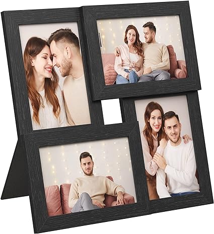Fotoframe collage voor 4 foto’s, 10 x 15 cm, wandbevestiging fotogalerij display, met glazen plaat, zwarte houten graan
