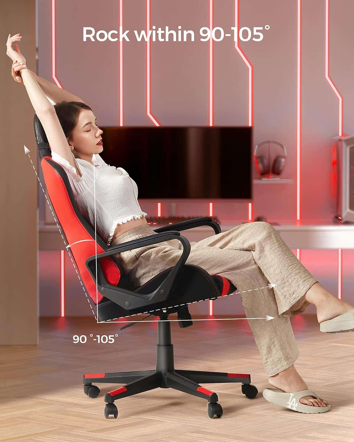 Deze zwart-rode gamingstoel is een perfecte keuze voor gamers die op zoek zijn naar een comfortabele en ergonomische stoel. De stoel is voorzien van een afneembare hoofdsteun, een lendenkussen en een in hoogte verstelbare zitting. De stoel is ook voorzien van een wipfunctie, waardoor je de stoel gemakkelijk kunt verplaatsen.