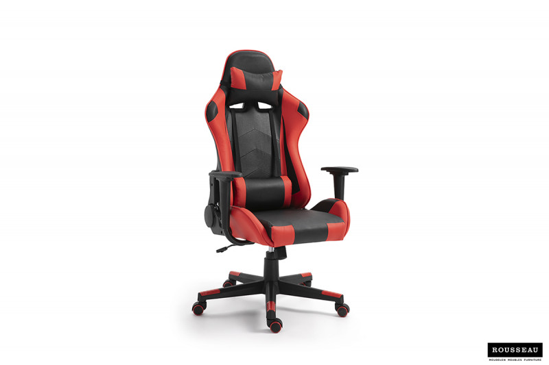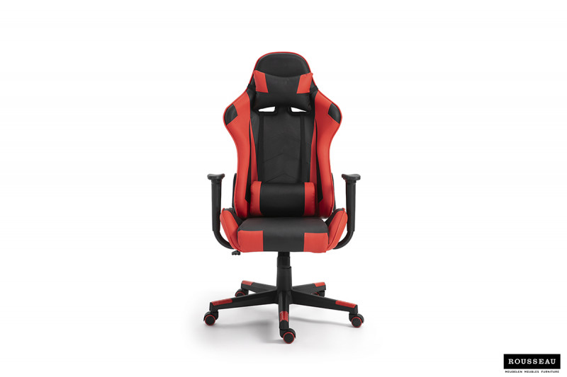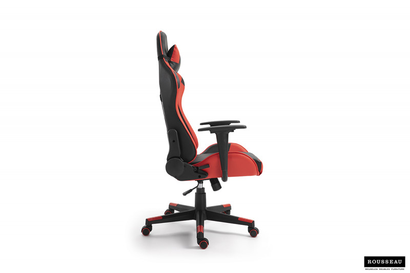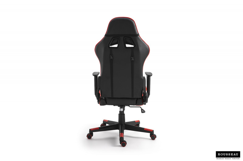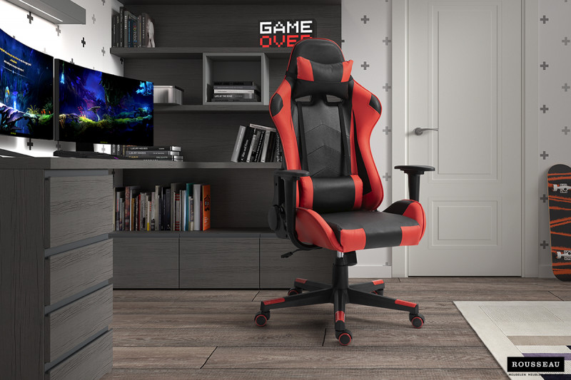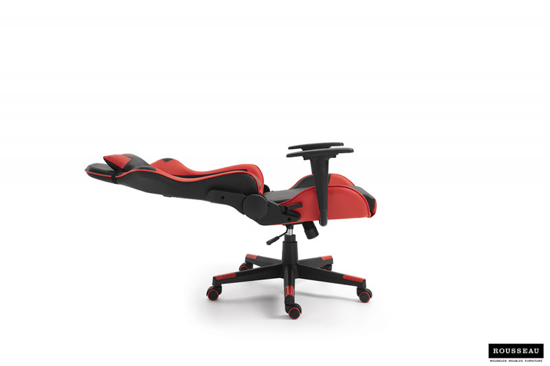 Gamingstoel, Bureautafelstoel, ‘Eric’ PU Rood/zwart, Poten metaal en plastiek, bekleding PU